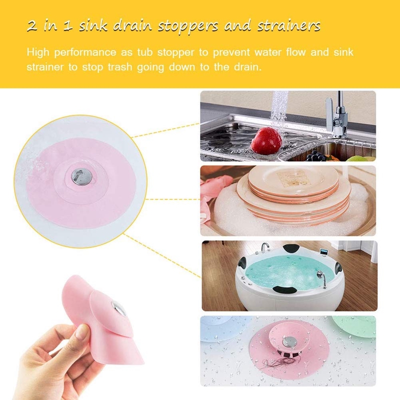 Trap Hair Catcher, Bathtub 2-in-1 Silicone Drain Tub Stopper, Strainers For Floor, Kitchen, Laundry, And Bathroom