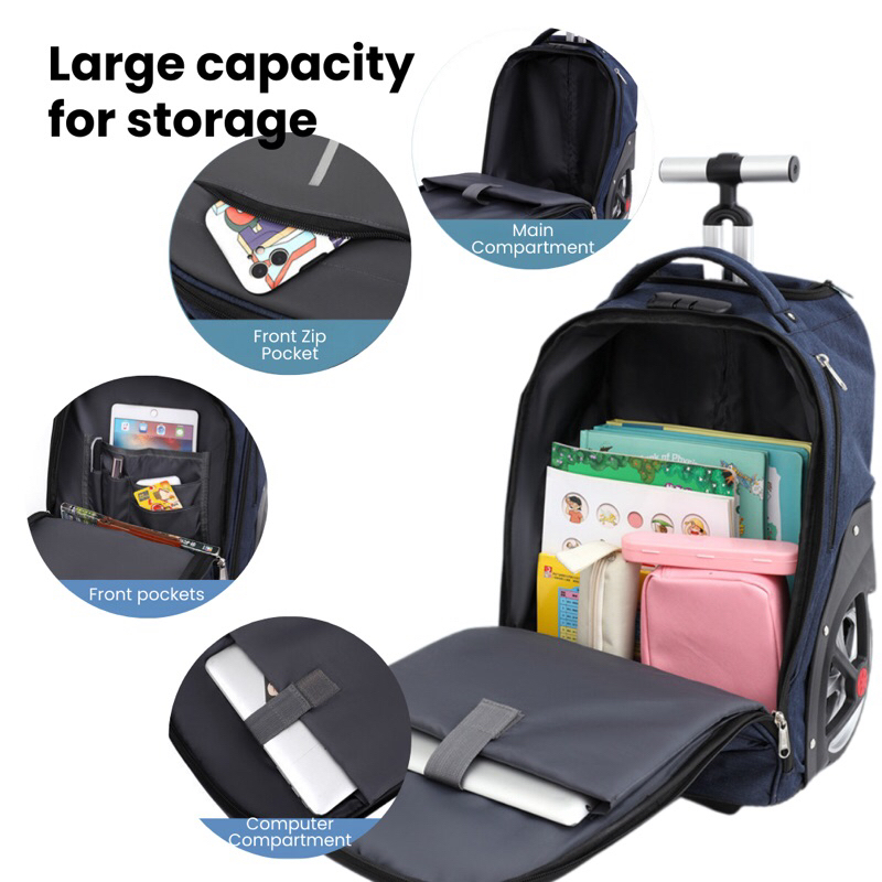 Travel Backpack Luggage with Large Wheels Smooth Lightweight Roller Bag for Trips Business