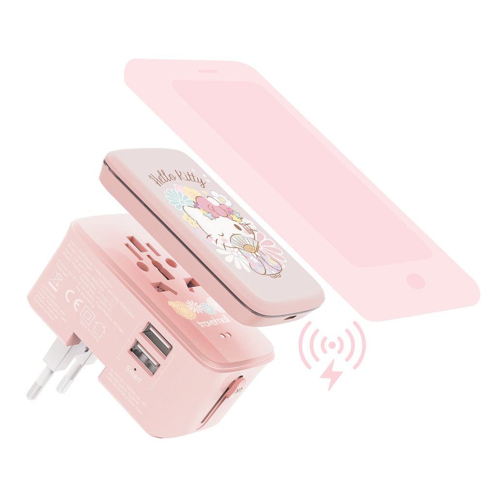 Travelmall x Hello Kitty 10W Wireless Charging Pad & Dual-USB Charger Set with Ring Buckle - Travel Adapter