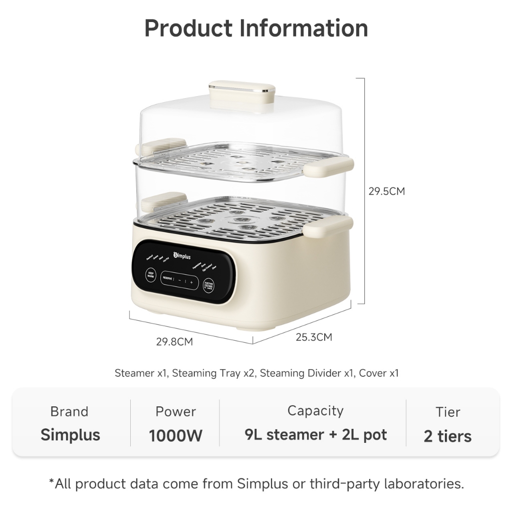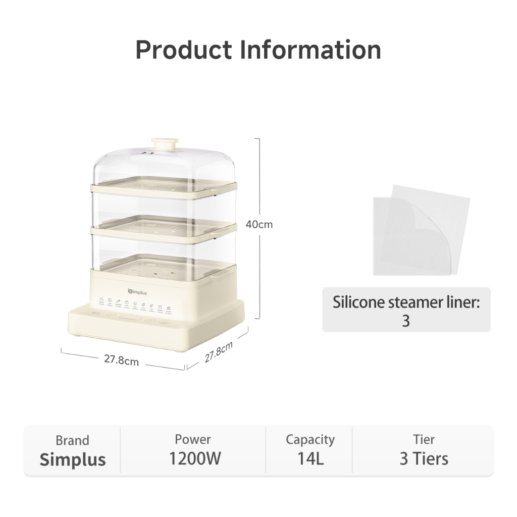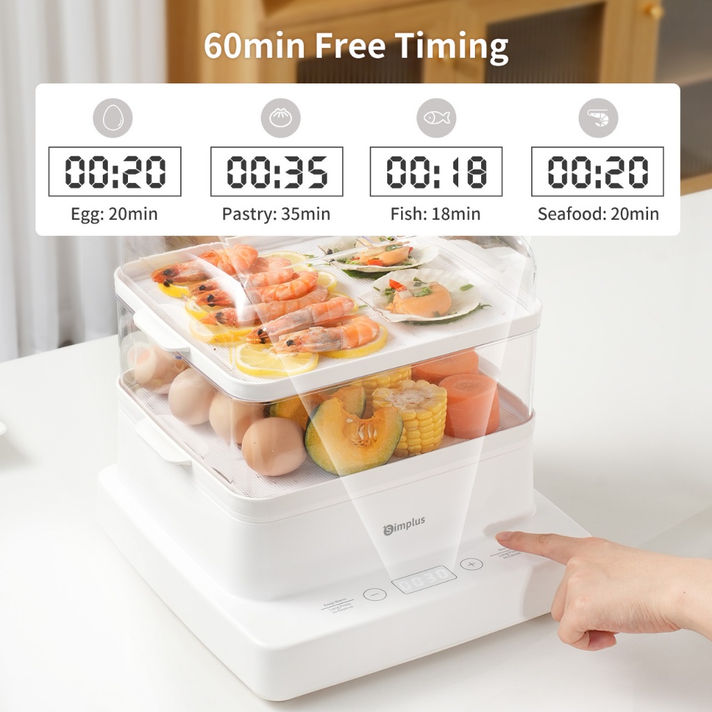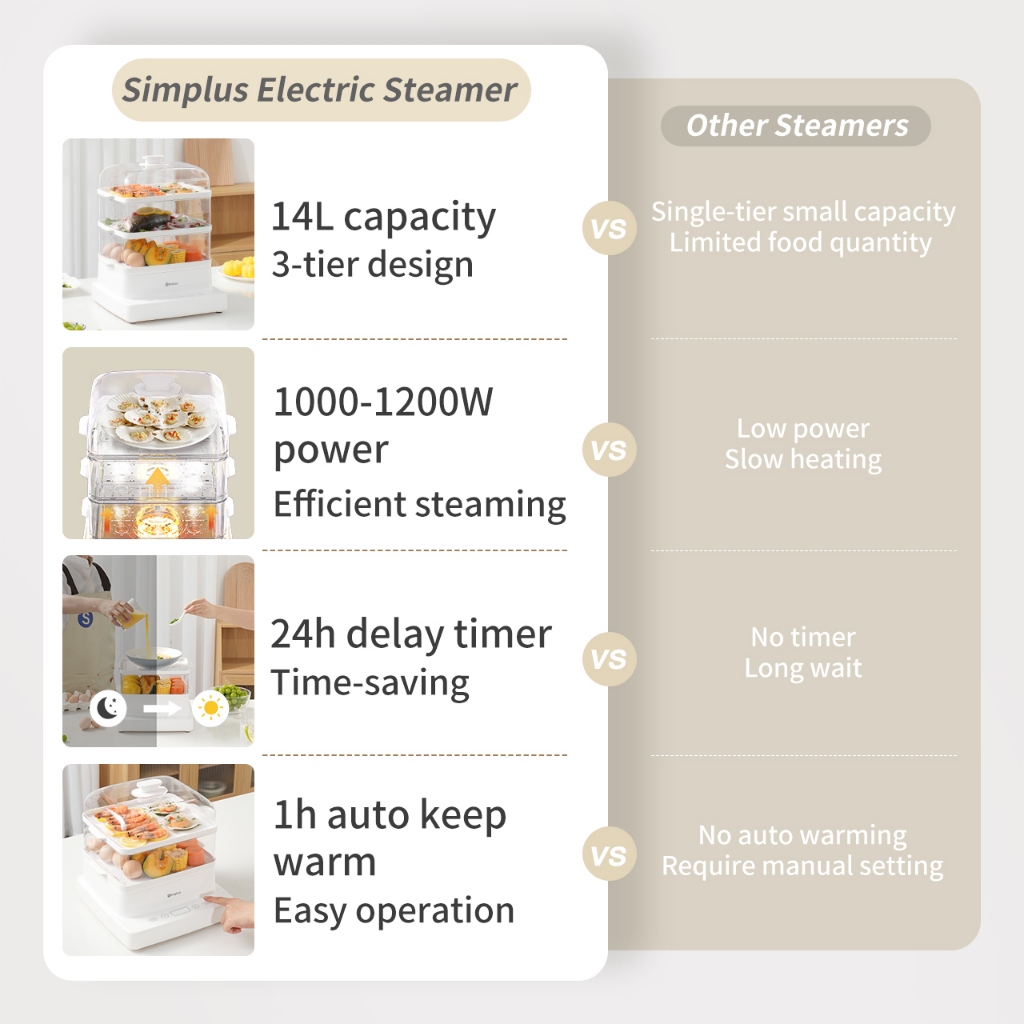 Simplus Electric Food Steamer丨3-Tier 14L Capacity丨1200W Power丨24hrs Reservation丨1hr Keep Warm DZEG003