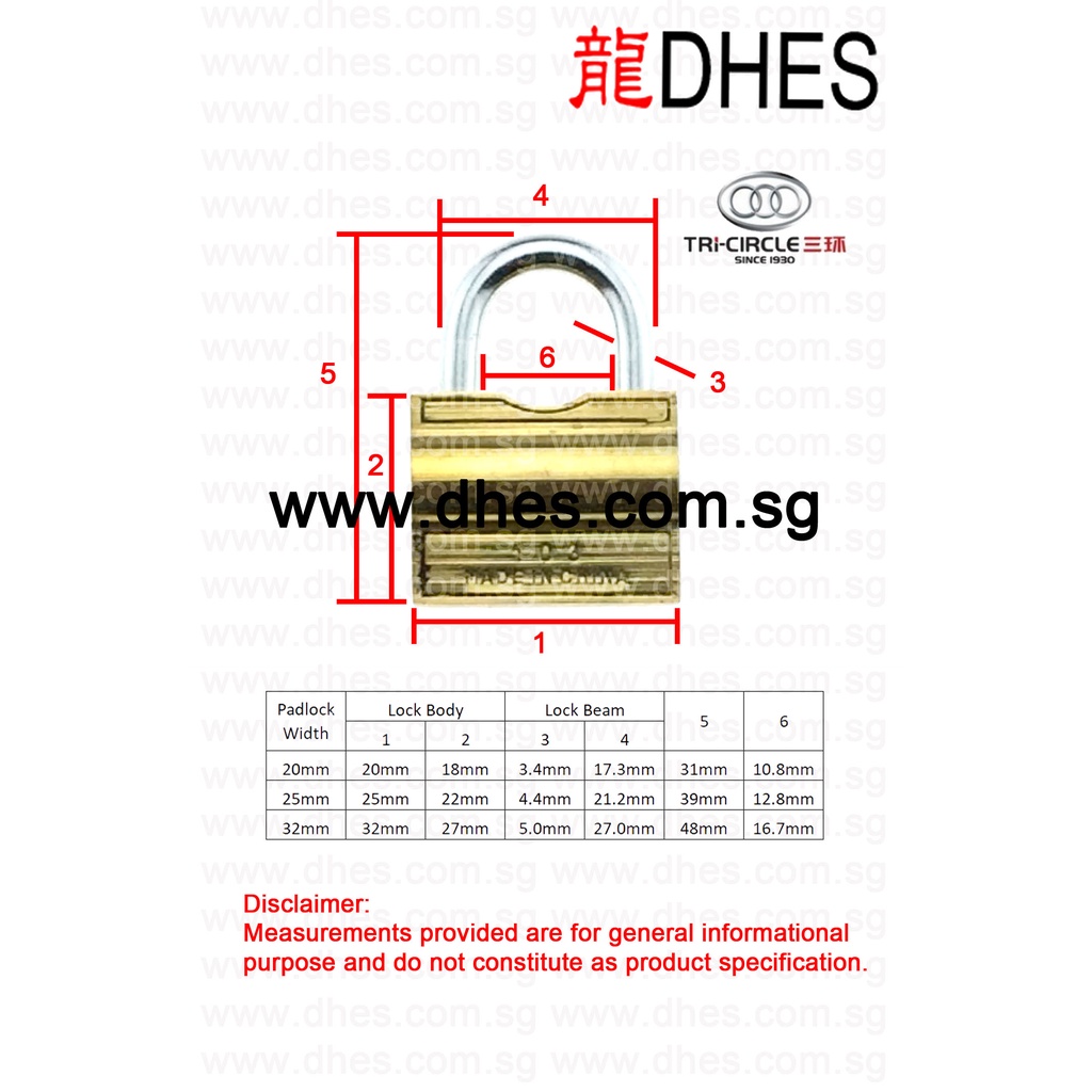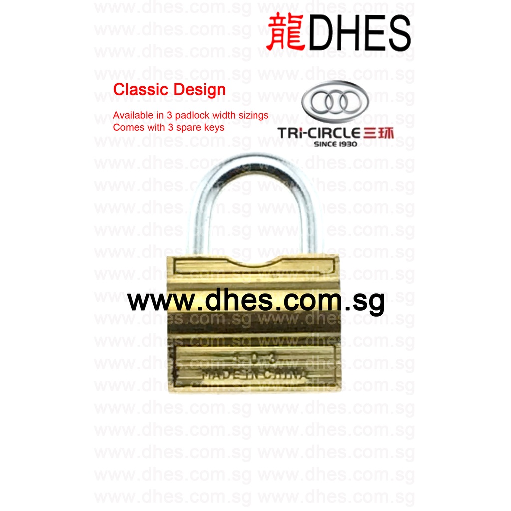 Tri Circle TriCircle Classic Standard Shackle Brass Padlock Made In China