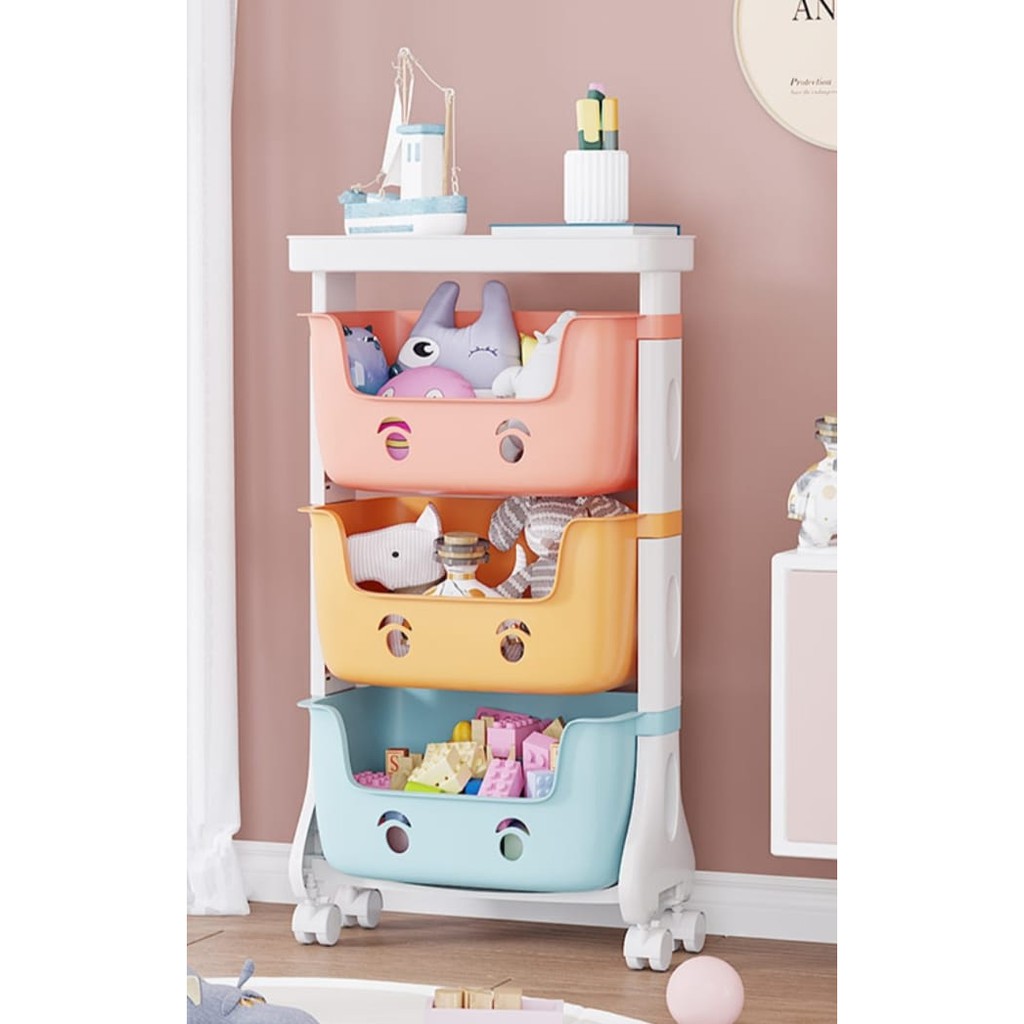 Troli Penyimpanan Kecil 2/3/4 layers Children's Toy Organizer Small Storage Cart Kids Cute Roller Racks Adorable Trolley