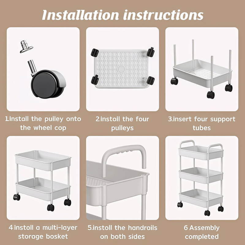 Trolley Cart Organizer Trolley Rack Storage 3/4/5 Tier With Wheels Moving Multipurpose ABS Tray Kitchen Storage Trolley