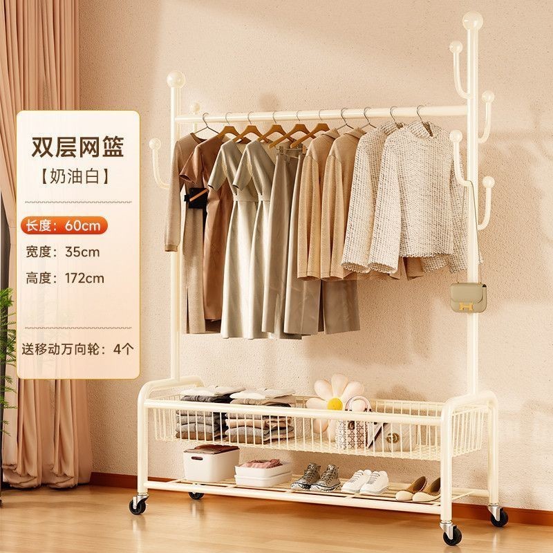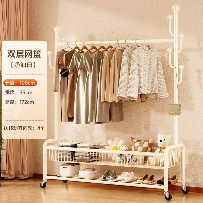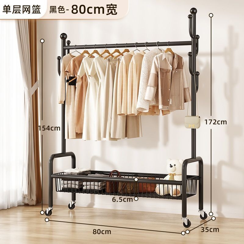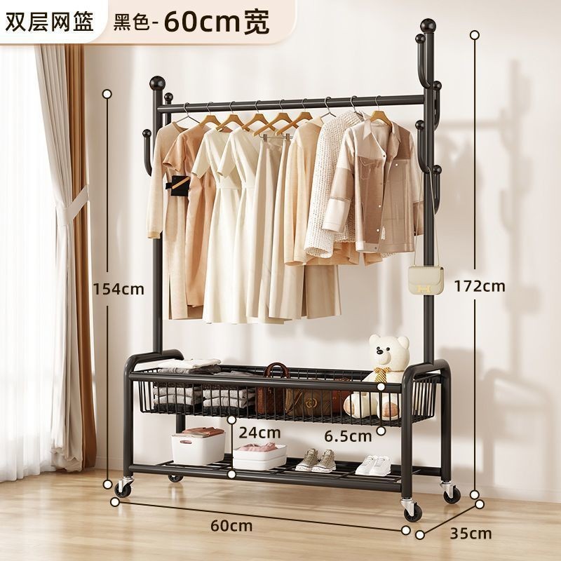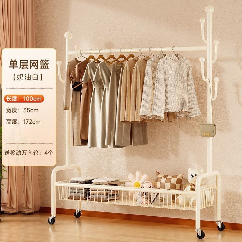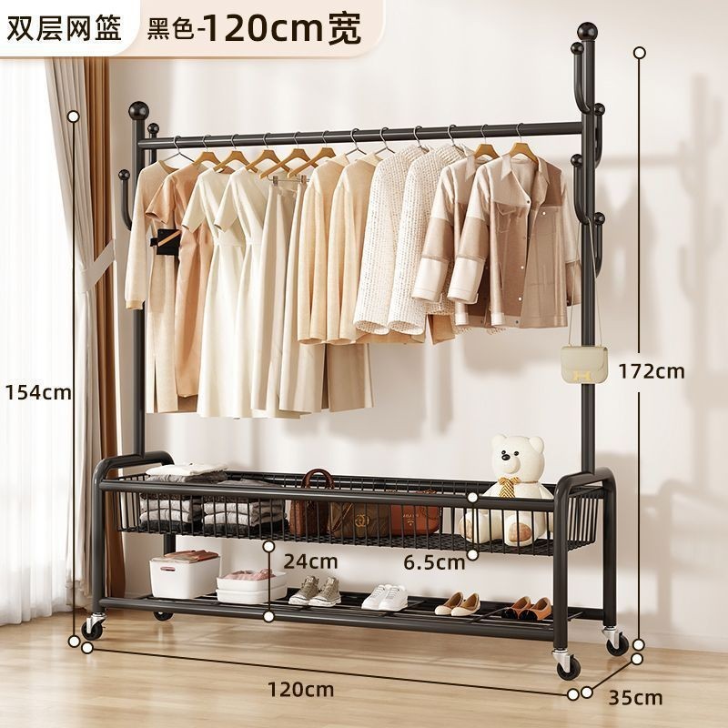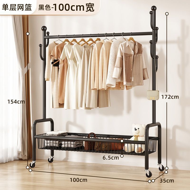 Trolley Clothes Rack With Hanger Basket Thick Clothes Rack Coat Rack- Drying Rack