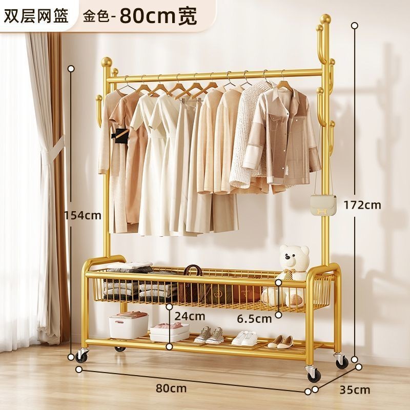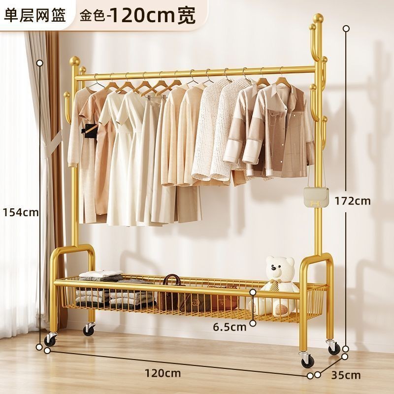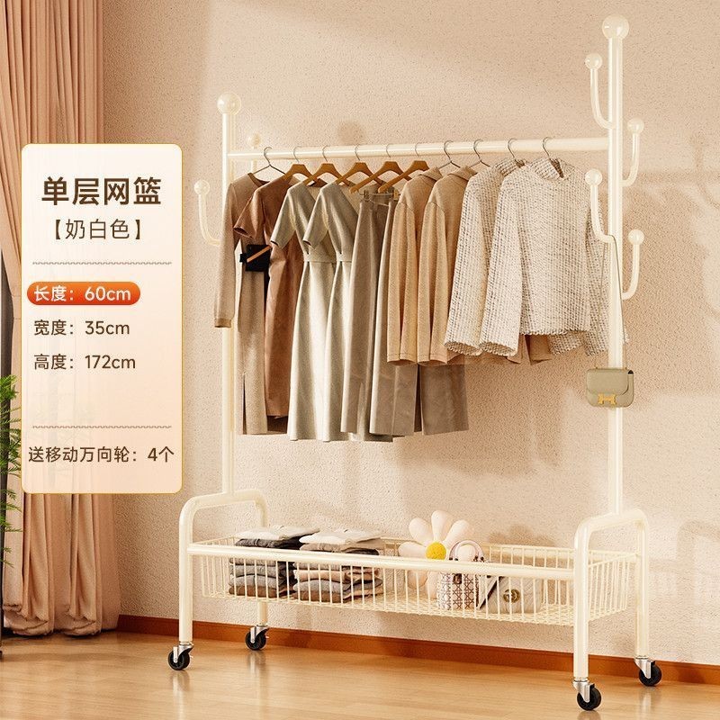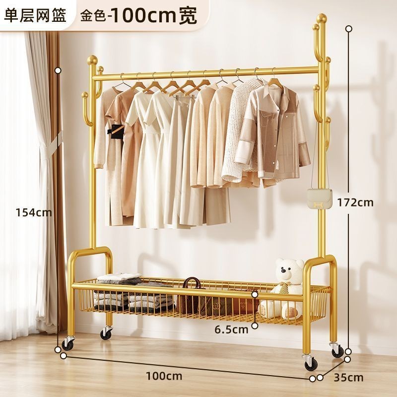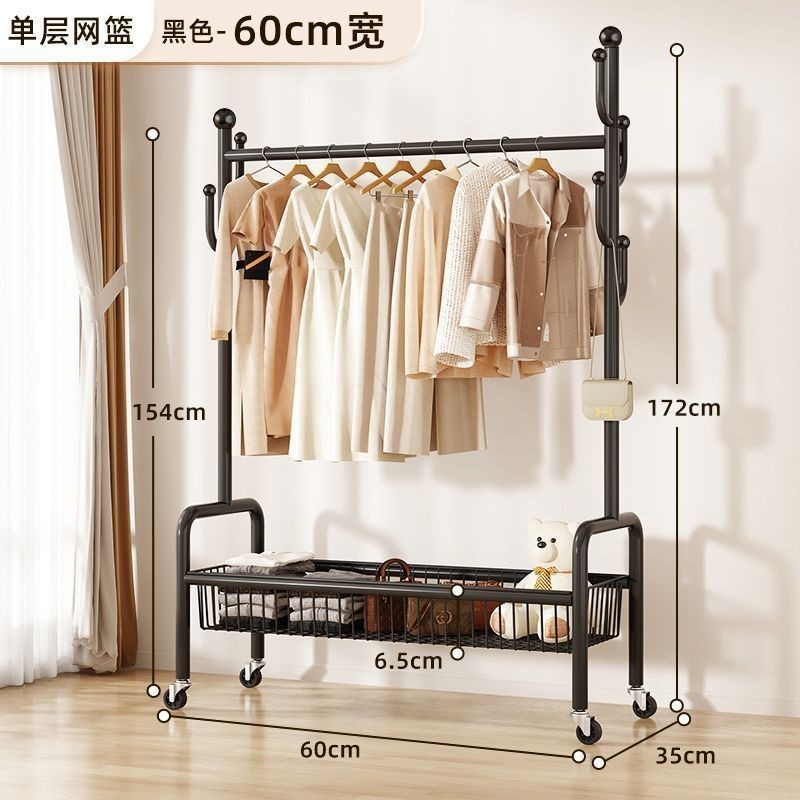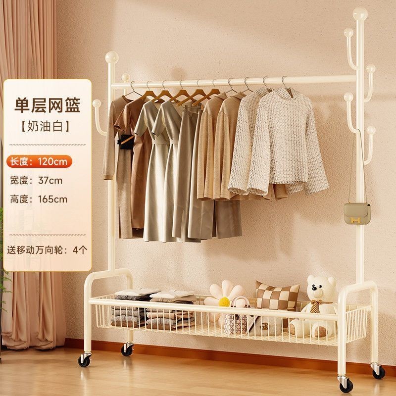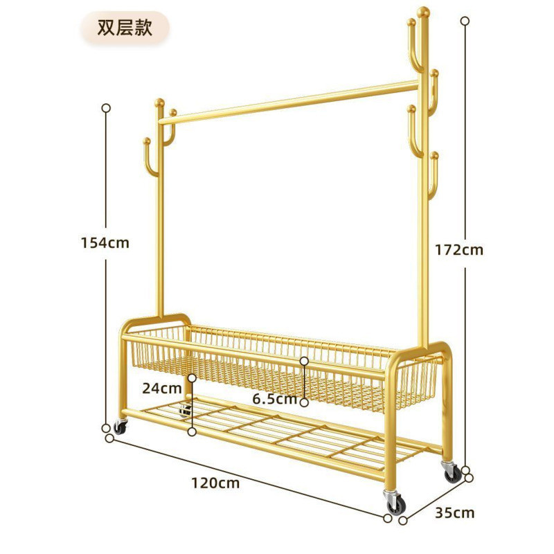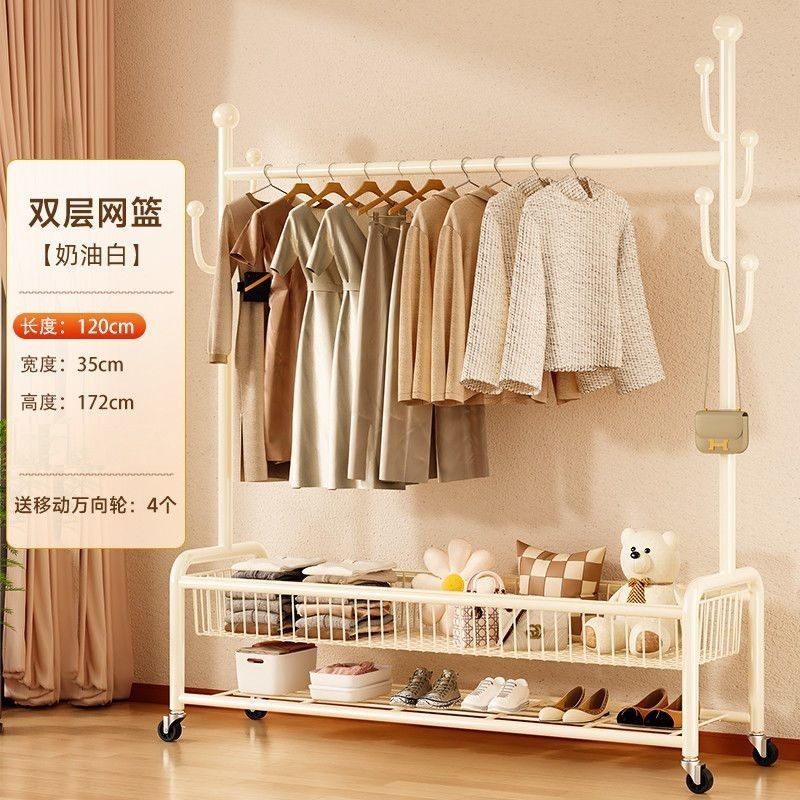 Trolley Clothes Rack With Hanger Basket Thick Clothes Rack Coat Rack- Drying Rack
