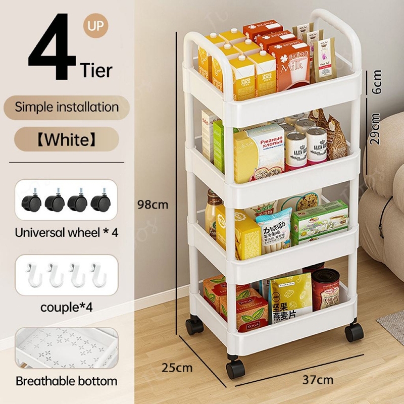 Trolley Rack 3/4/5 Tier Movable Kitchen Storage Organizer Trolley With Wheels ABS Tray Livingroom Trolley Cart