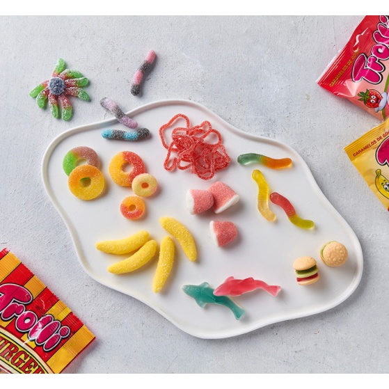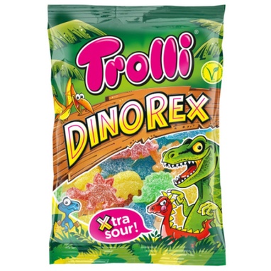 Trolli Jelly Sweet Gummy (with free-gift) 13 types Dino Rex / Sour glow worms, Neon Squiggles, Nite Crawlers, Peach Rings, Spaghetti, Tropic O's, Vegan Jelly Kiss, Spaghetti Cola