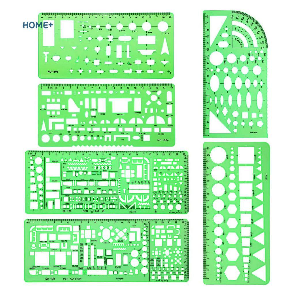 Ts 6 Pcs Architect Multi Purpose Drawing Template Set House Plan Interior Design and Furniture Drafting Tool Ruler @sg