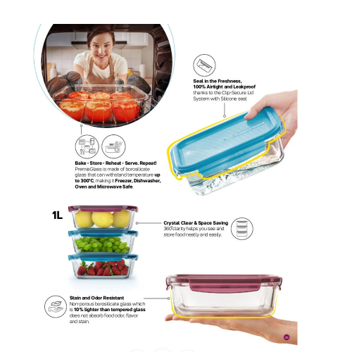 Tupperware Glass Container PremiaGlass Rectangular 1L