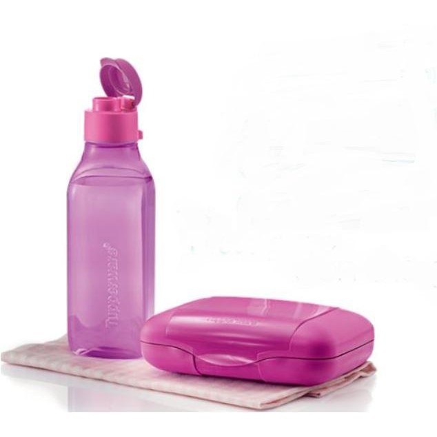 Tupperware Slim Sandwich Keeper OR Sandwich Clutch OR Compact Lunch Set Pink/Blue 500ml Bottle