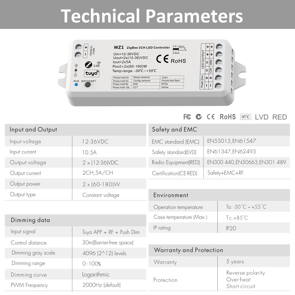 Tuya Zigbee LED Dimmer 12V 24V Switch 2.4G RF Wifi Touch Remote CCT 2 Single Color LED Strip Light Controller 12 volt Dimer