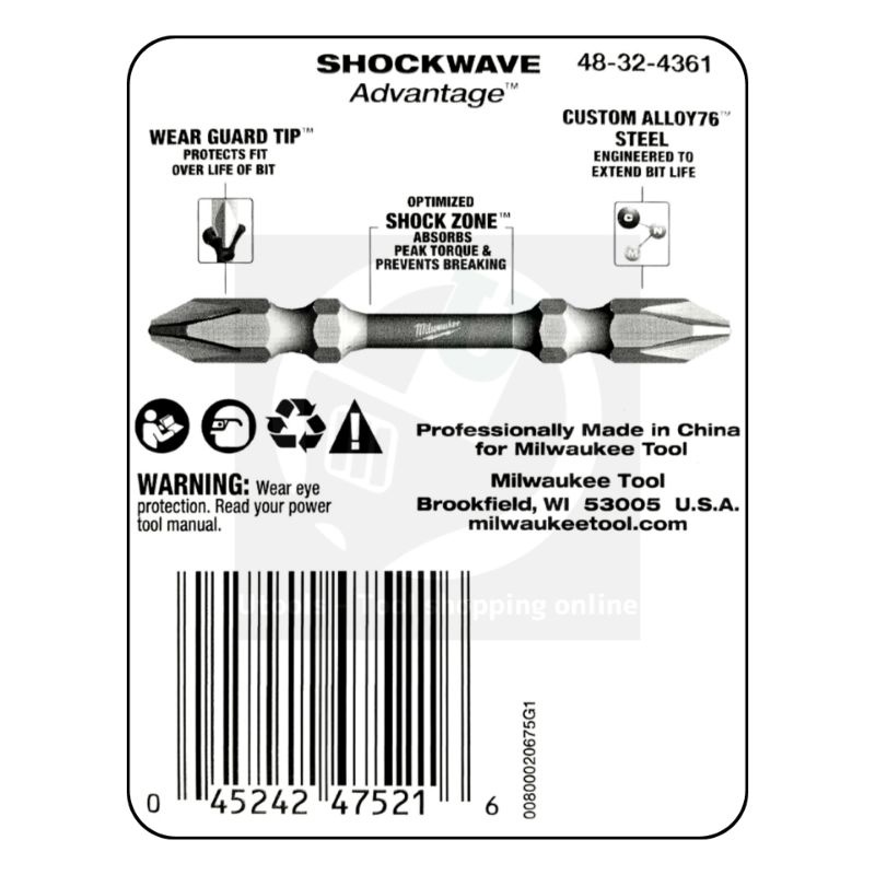 Twin Pack X2 Screwdriver Bit Milwaukee Shockwave impact PH1 PH2 65mm.+110mm