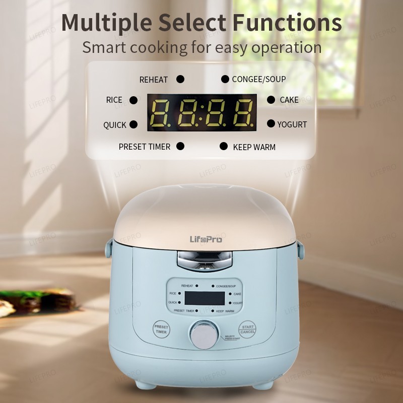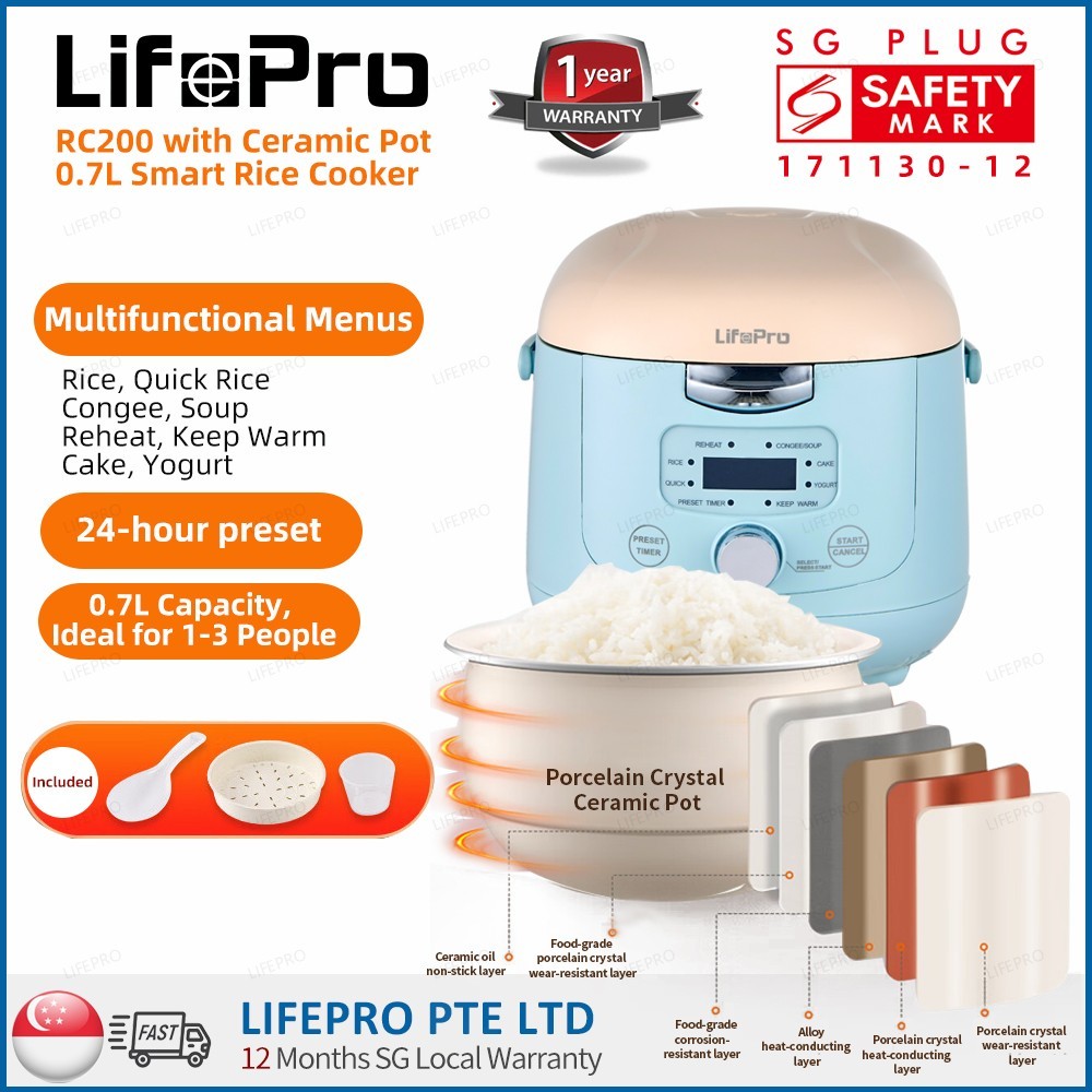 LifePro RC200 Mini Rice Cooker 0.7L (2L Pot) Portable Non-Stick Rice Cooker for 1-3 Pax | 3-Pin SG Plug | SG Warranty