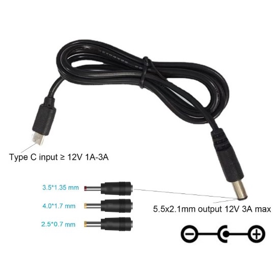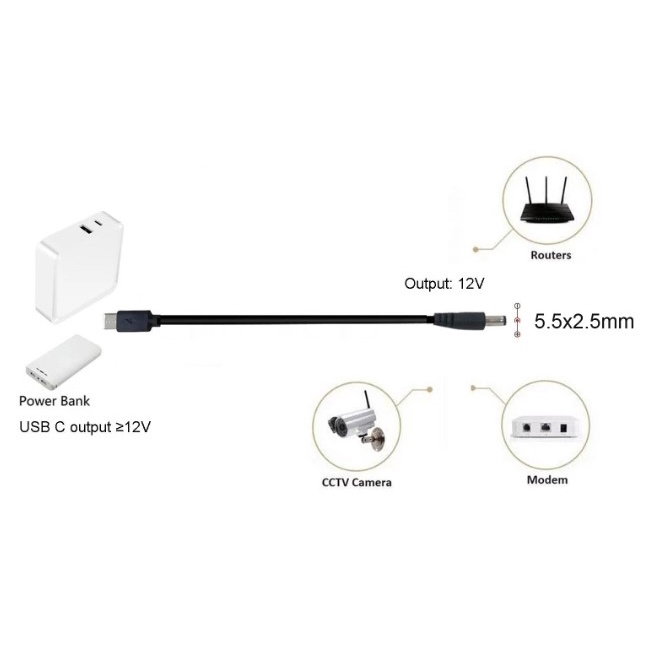 Type C to AC DC Cable 12V for USB C to WiFi Router LED Light CCTV Camera DVR Fan