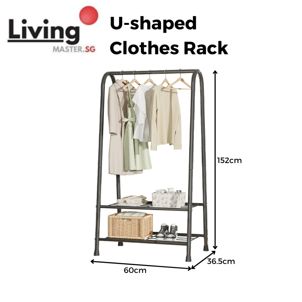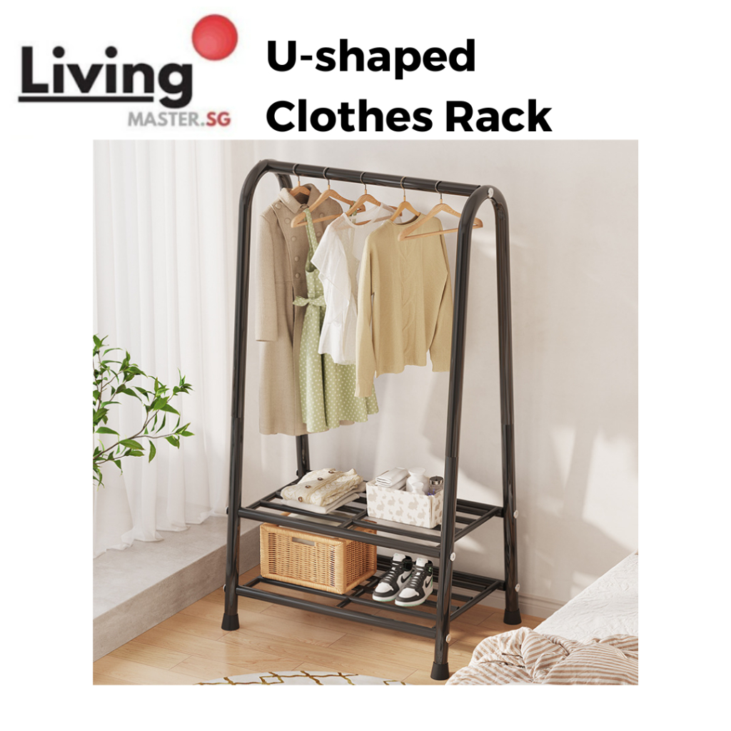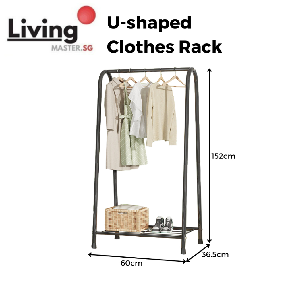 U Shape Metal Cloth Rack / Clothes Storage Rack / Floor Shelf Stand Triangle Clothes Rack for Light Usage Organiser