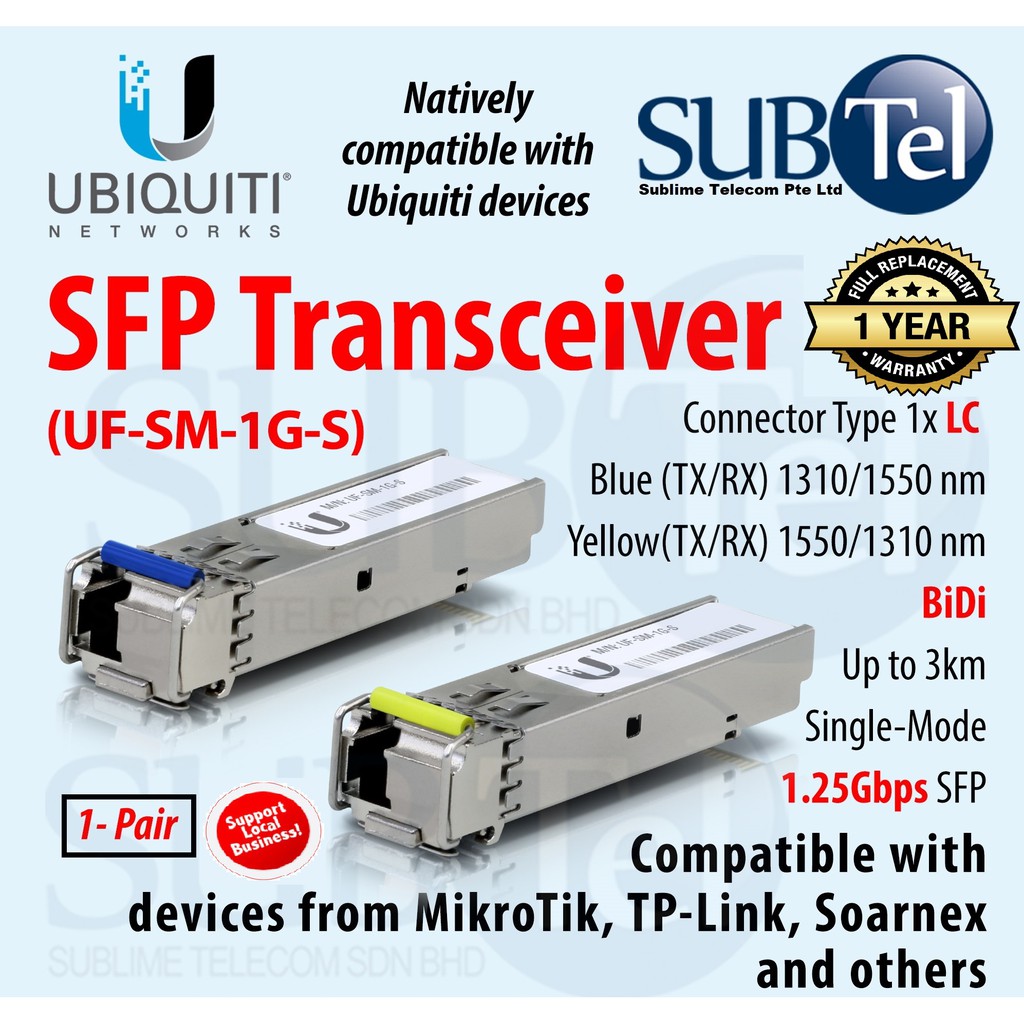 UF-SM-1G-S Ubiquiti U Fiber SM Single Mode 1 Gbps SFP Fiber Module BiDi UACC-OM-SM-1G-S UBNT