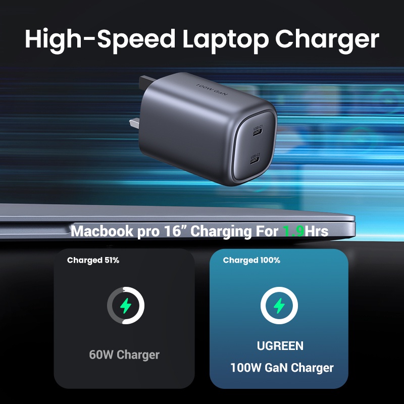 UGREEN 100W GaN 2-Port USB C Charger Type C Fast Wall Power Adapter for Phone and Tablet