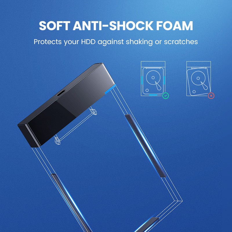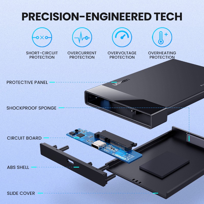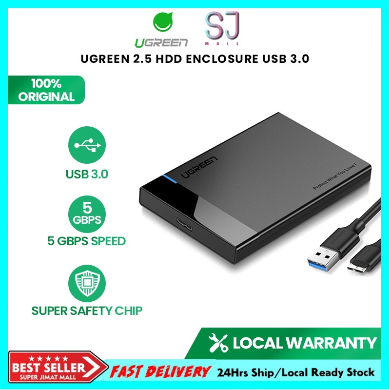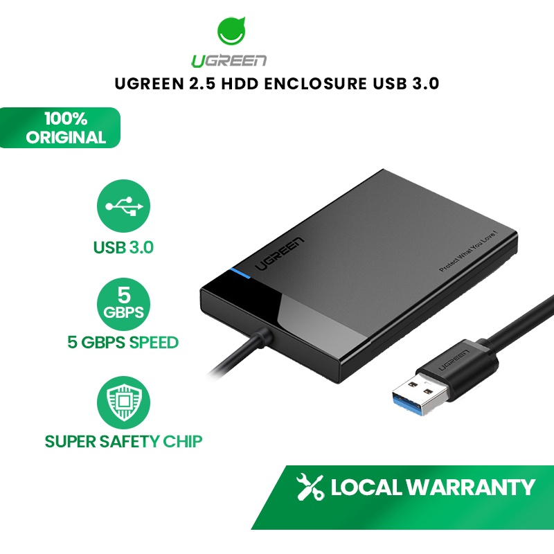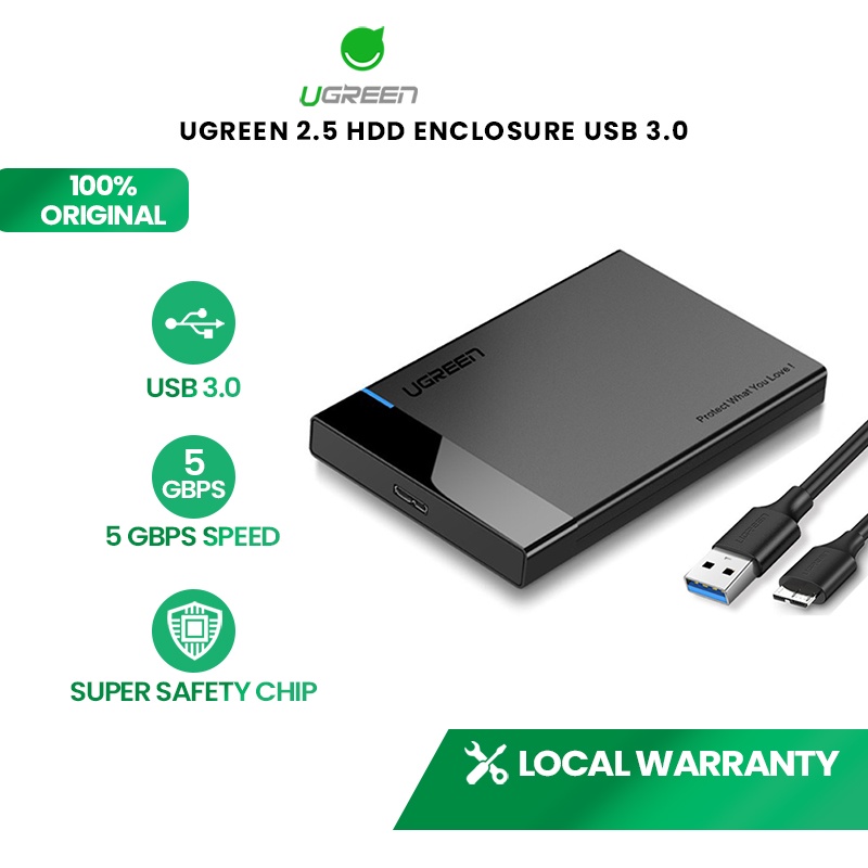 UGREEN 2.5" Hard Disk Enclosure USB 3.0 External SATA HDD Enclosure PC Laptop (With Cable)