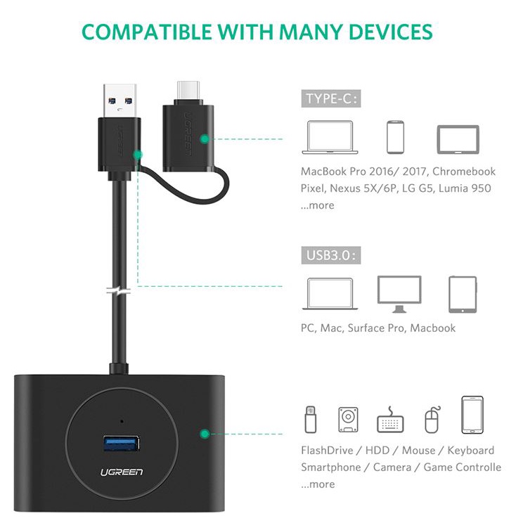 UGREEN 4 Port USB3.0 Hub High speed USB HUB
