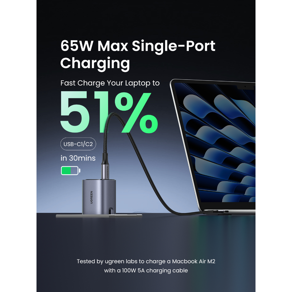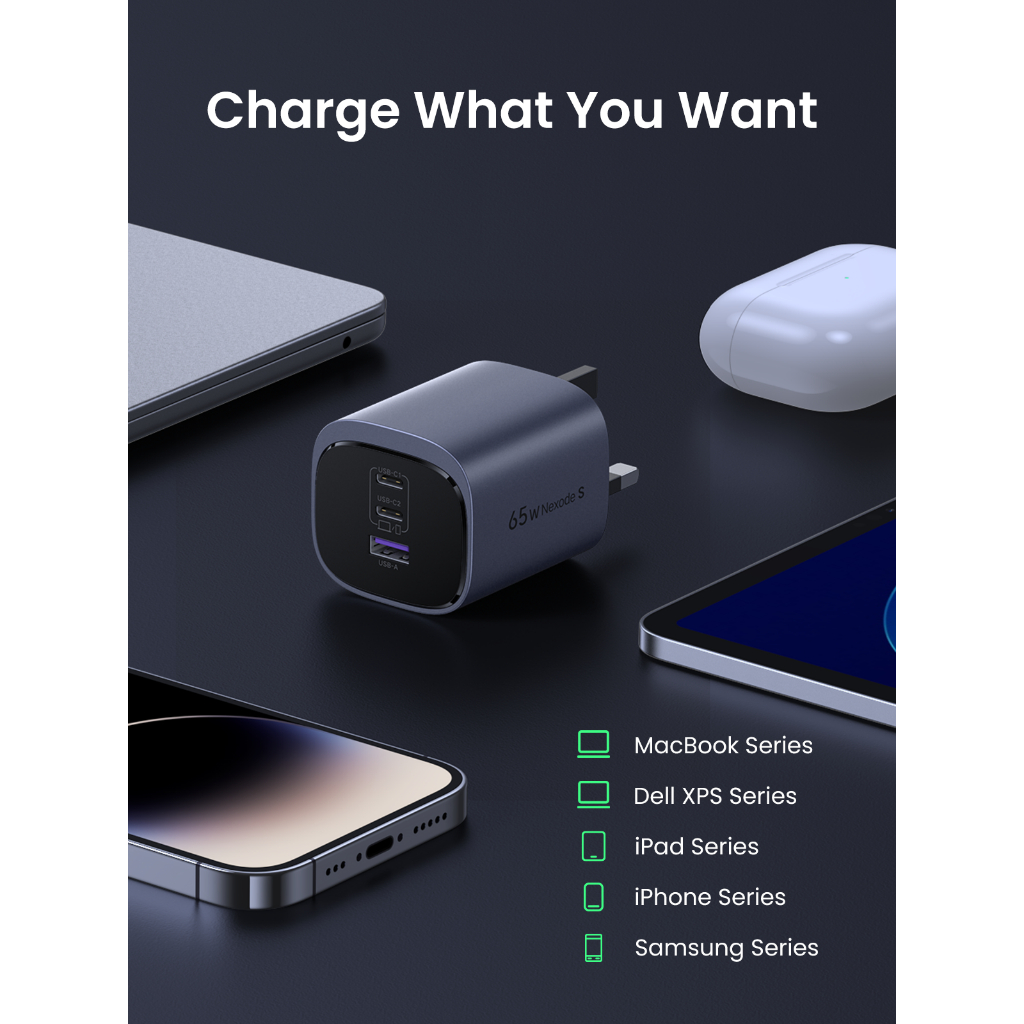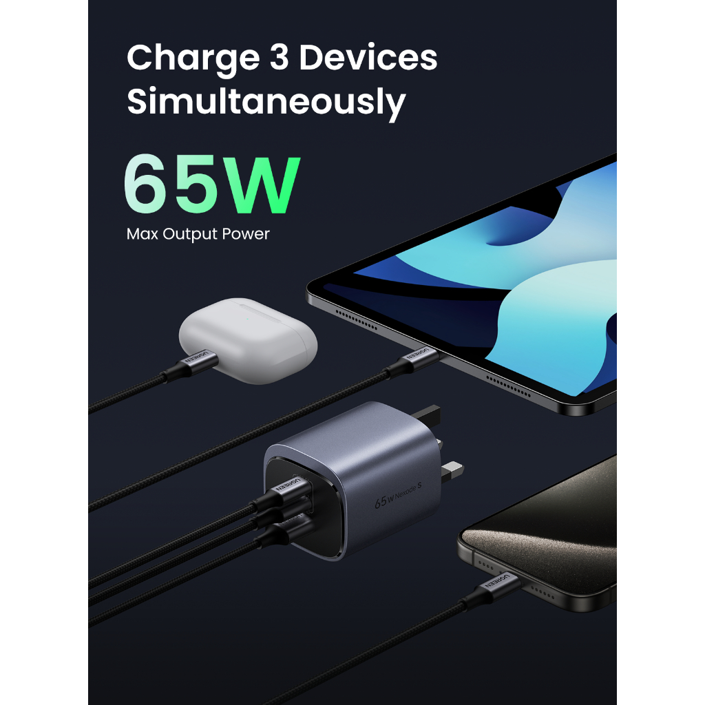 UGREEN 65W USB C Charger, Nexode Foldable 3-Port Type C Laptop Wall Charger, PPS/PD3.0 Fast Charger Plug