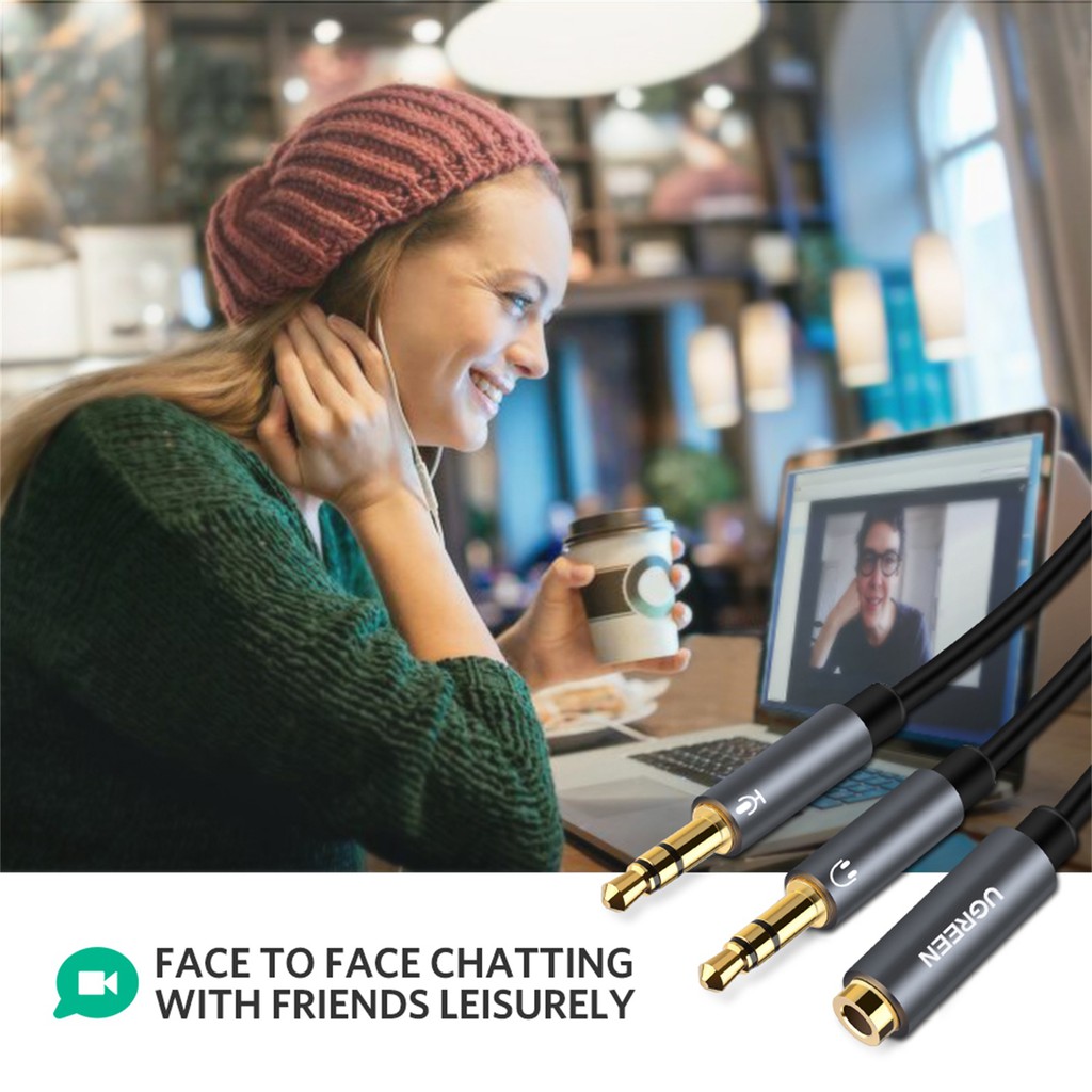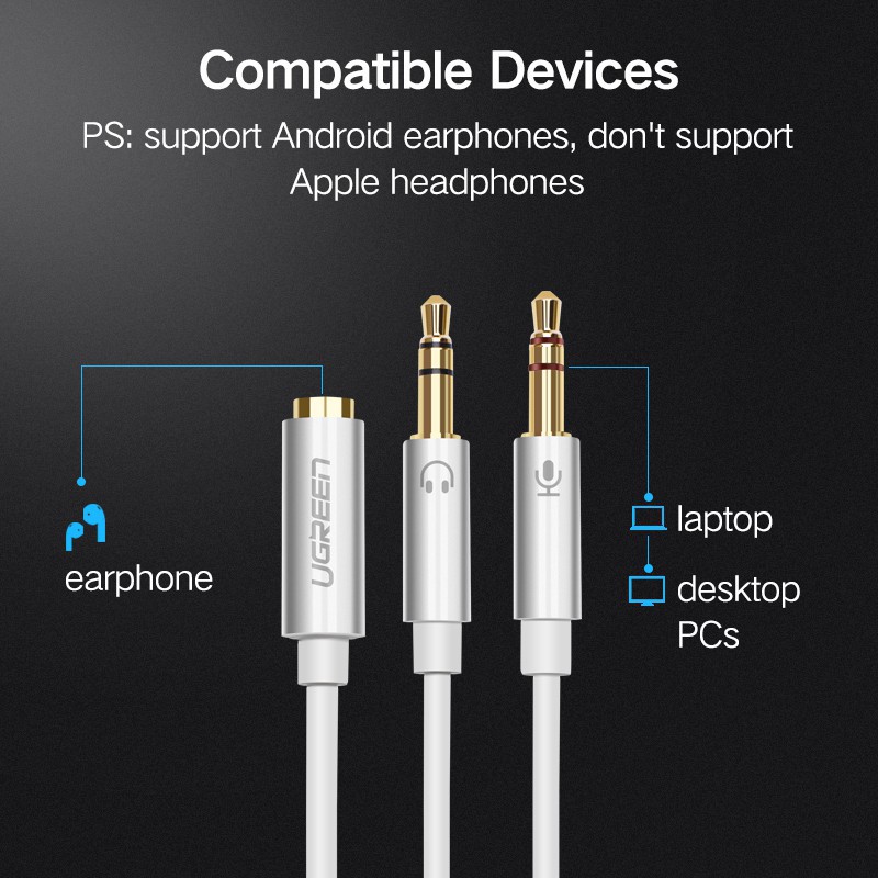 UGREEN Mic Headphone Splitter Headset Audio Microphone Adapter CTIA Standard 3.5mm Female To 2 Dual 3.5mm Male