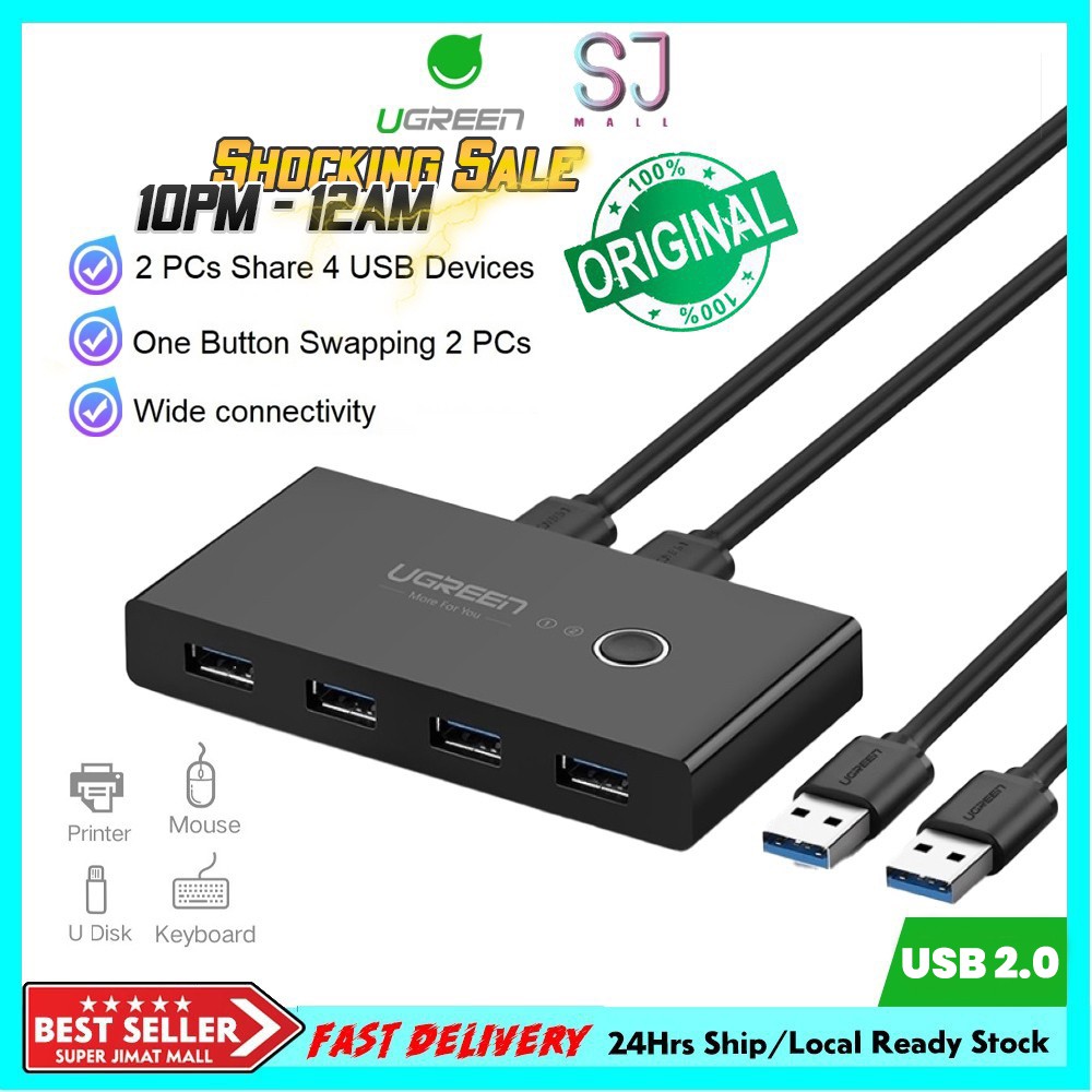 UGREEN USB 3.0 Switcher Adapter 2 Computer 4 Port USB Sharing Switch Peripheral Box for PC with One Button 2 Pack USB A