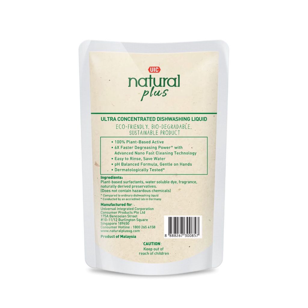 UIC Natural Plus Ultra Concentrated Diswashing Liquid, Sparkling Fresh, Refill 450ml