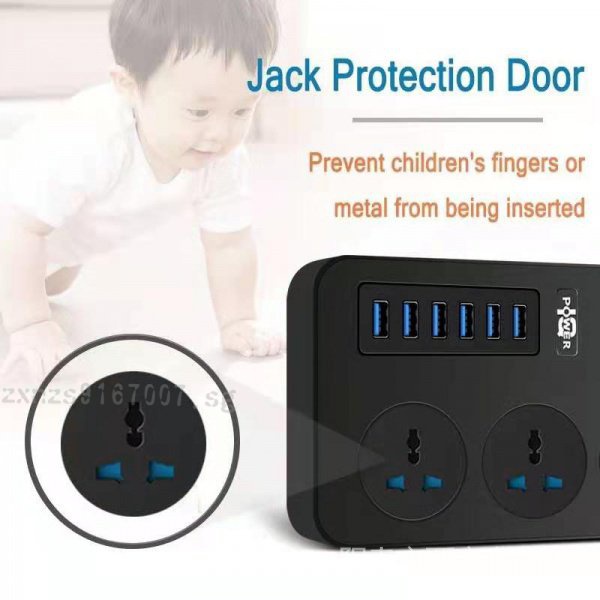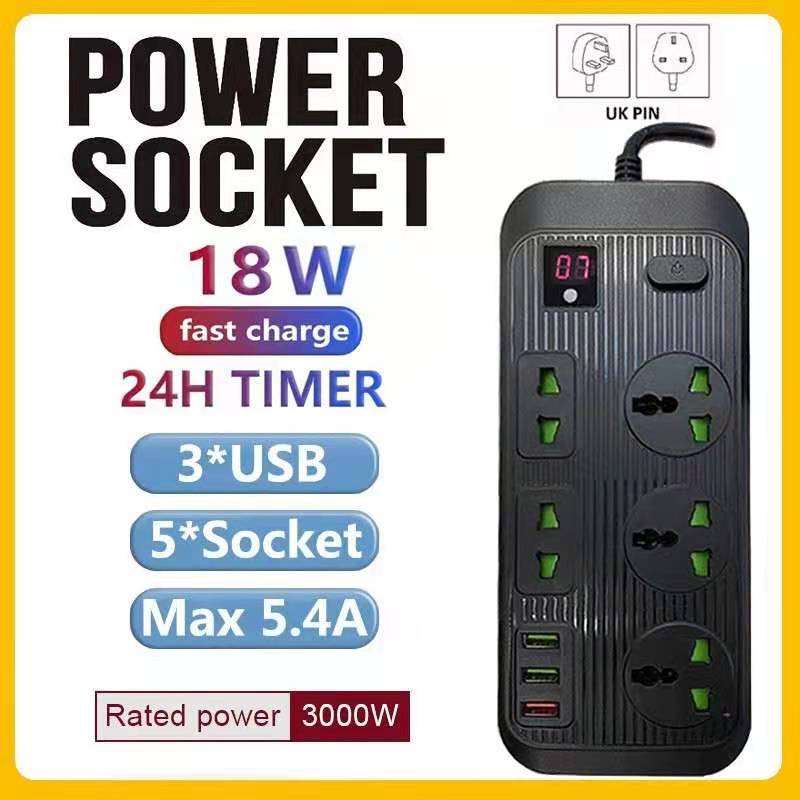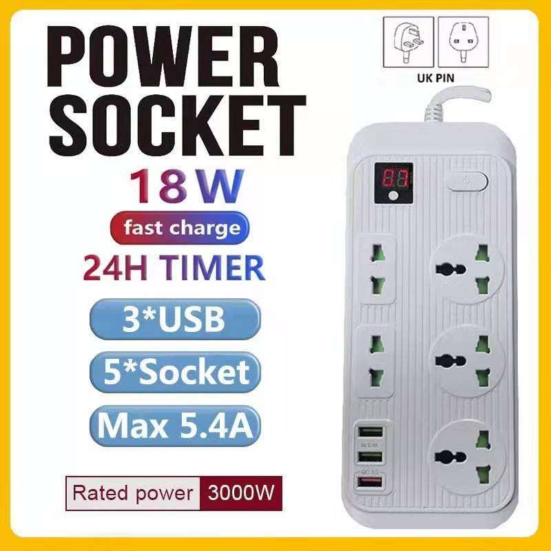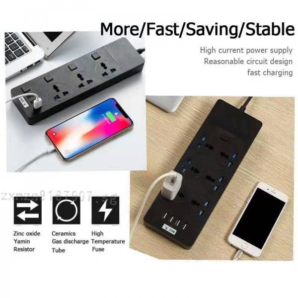 UK Plug 3000W Power Strip Universal Power Socket + USB Charger Output 3.1A Travel Accessory Plug Extension WIth Anti-misplug Safety Door,2 Meter/3 Meter/5 Meter Long Extension Cord