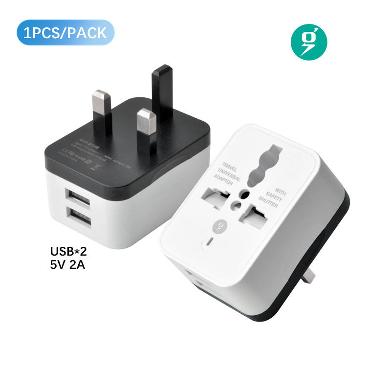 UK Plug Adapter with Dual USB 5V 2A/1A Multifunction 10A Universal To EU US UK AU Conversion Plug White Phone Charge Plug Top