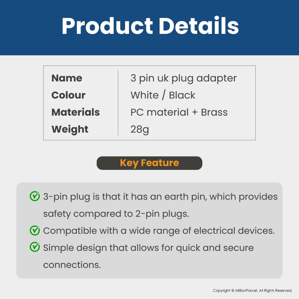 UK/SG 3 Pin Plug Power Converter | UK 3 Pin Plug Adapter | Travel Adapter | Universal Adapter PRO