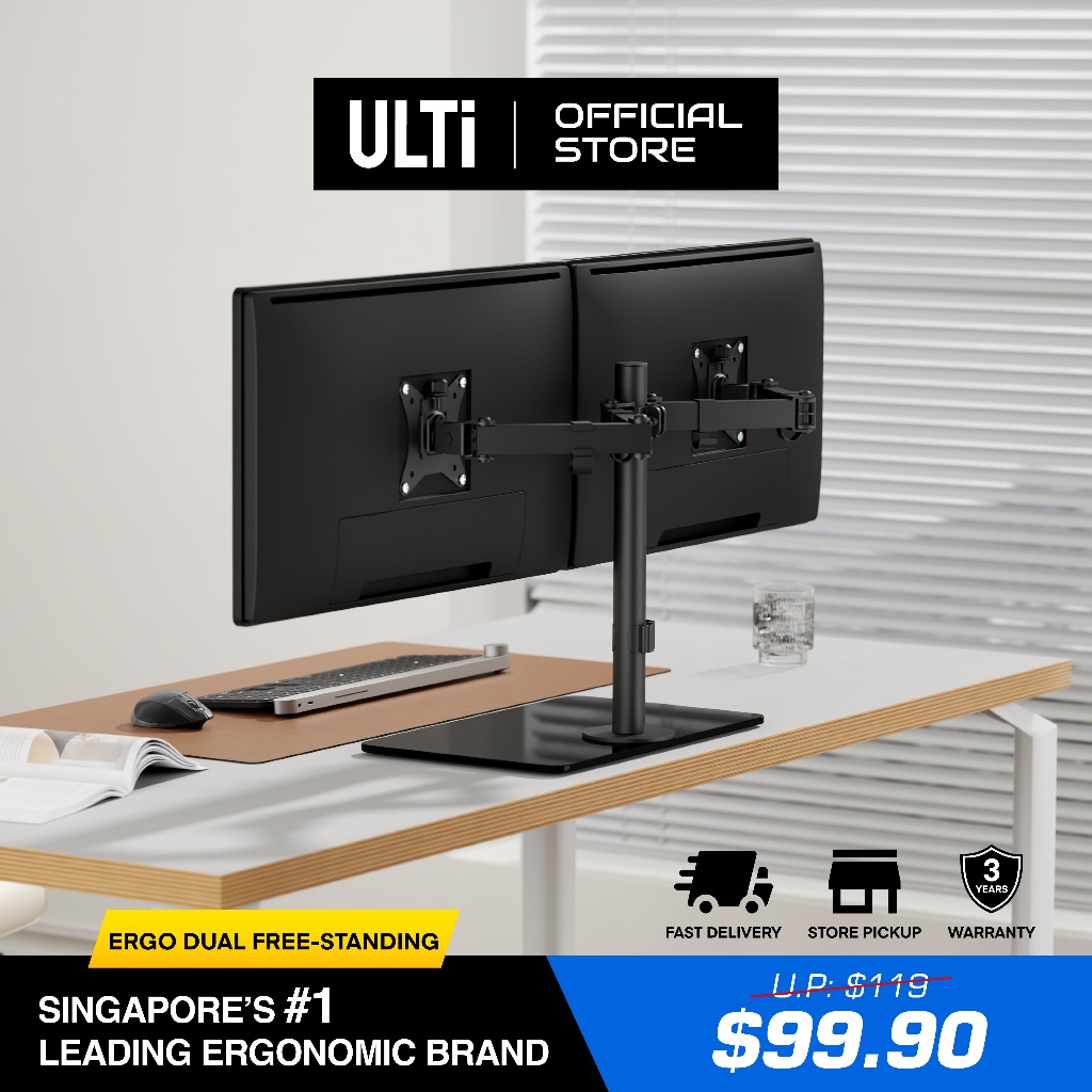 ULTi Ergo Dual Free Standing Monitor Mount Desk Stand, Spring Height Adjustable Monitor Arm for Screens up to 32 inches