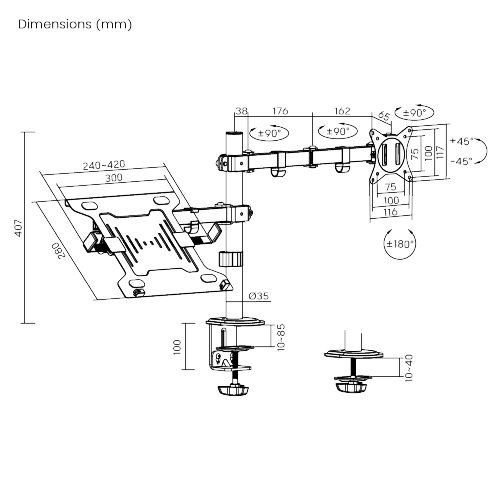 ULTi Evo Dual Monitor Arm with Stealth Laptop Tray | T1