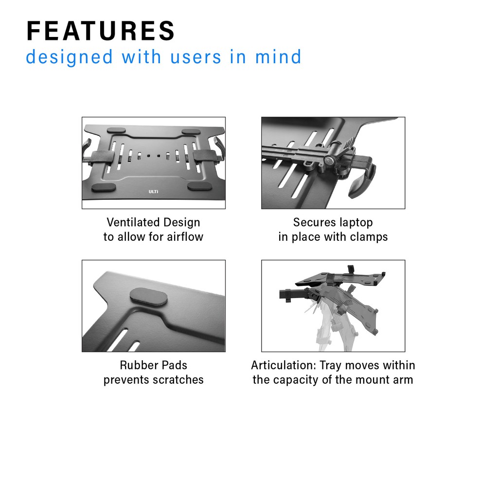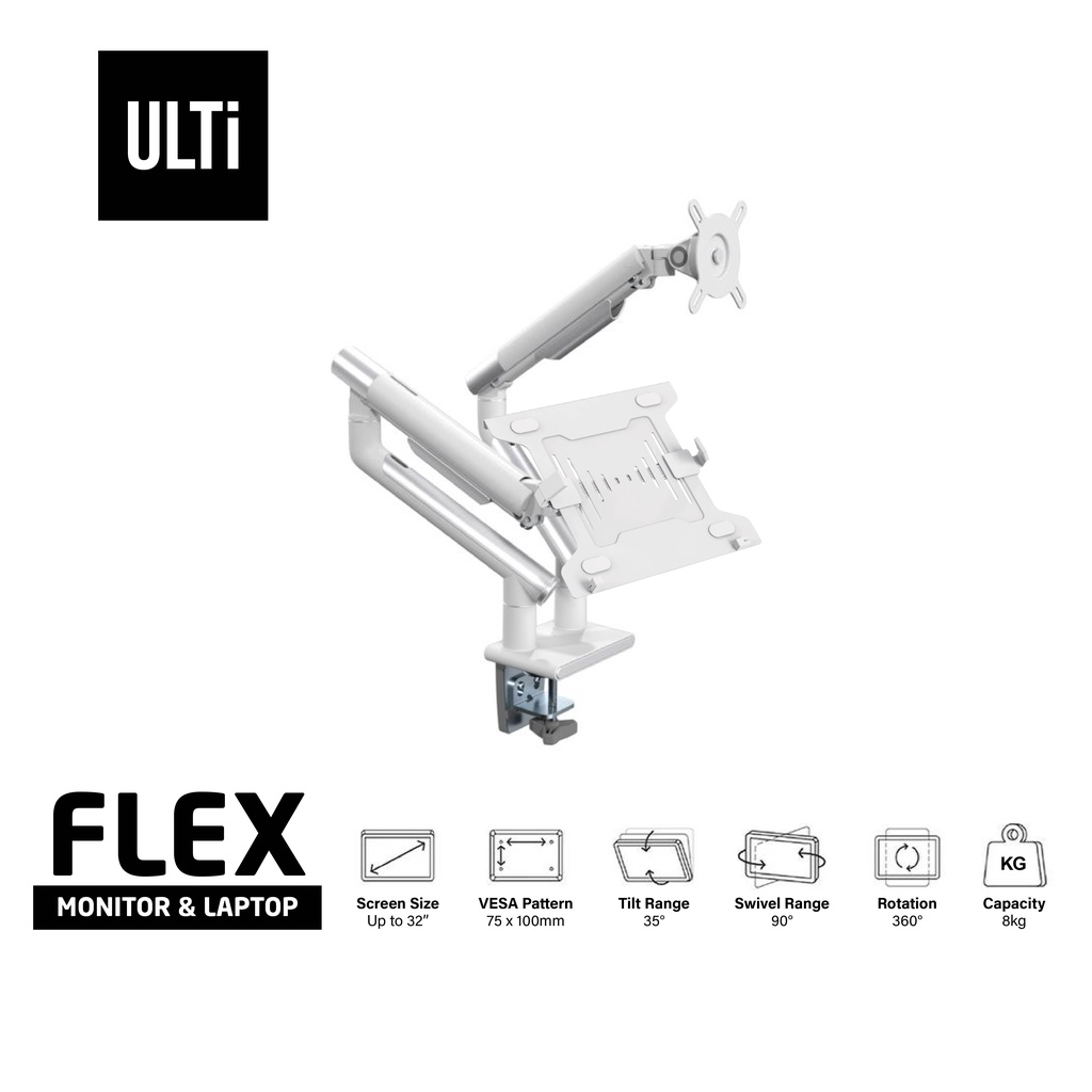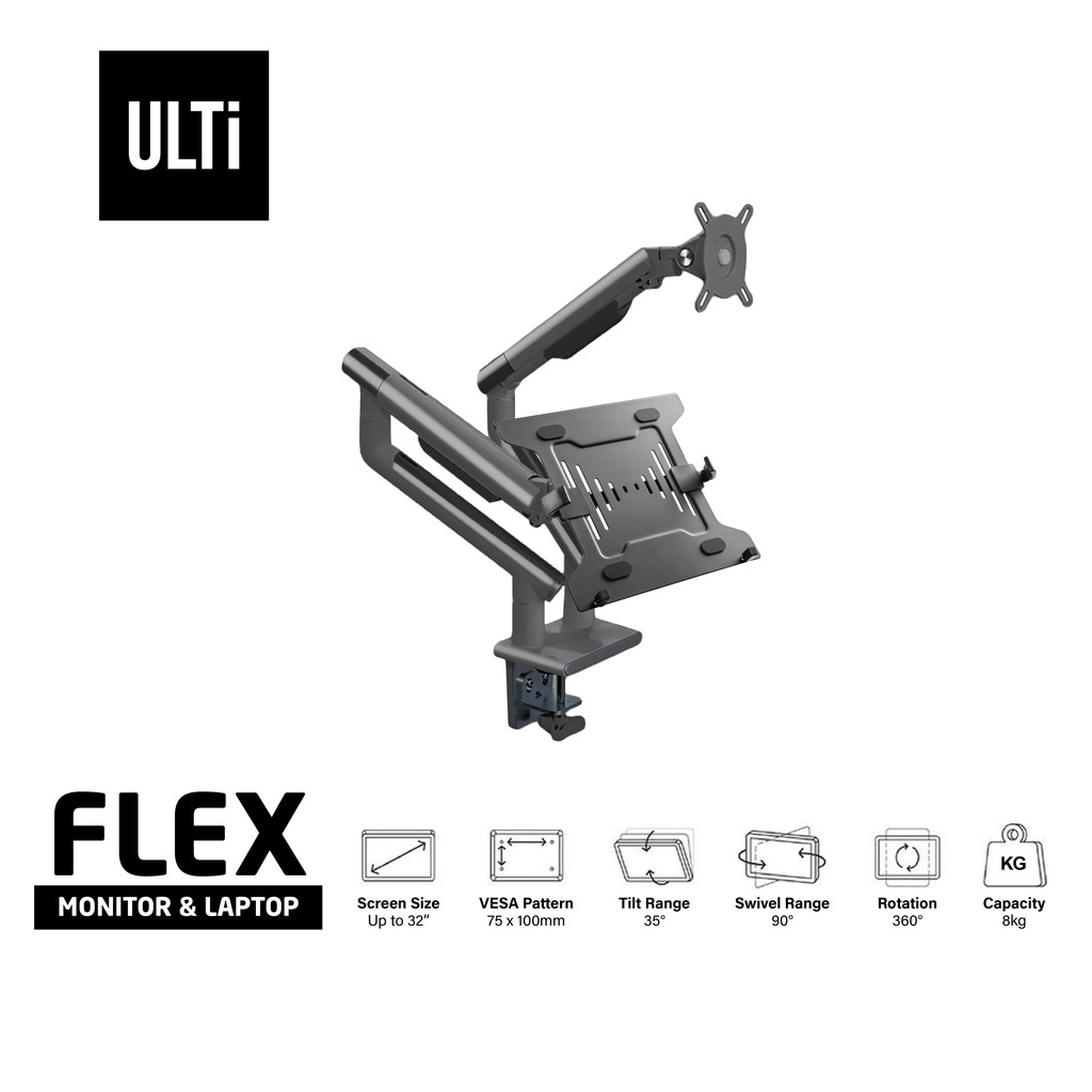 ULTi Flex Laptop & Monitor Stand - Mount up to 32" Monitor & 16" Laptop on 2 Adjustable Spring Arm, Ergonomic Mount