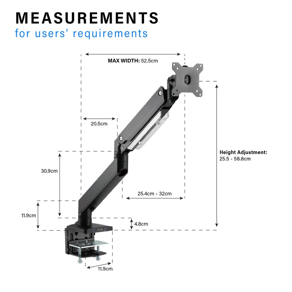 ULTi Ti Premium Aluminium Heavy Duty Gas Spring Arm for 38, 43, 49 Inch Monitor, Built-in USB 3.0, Audio, Mic Ports