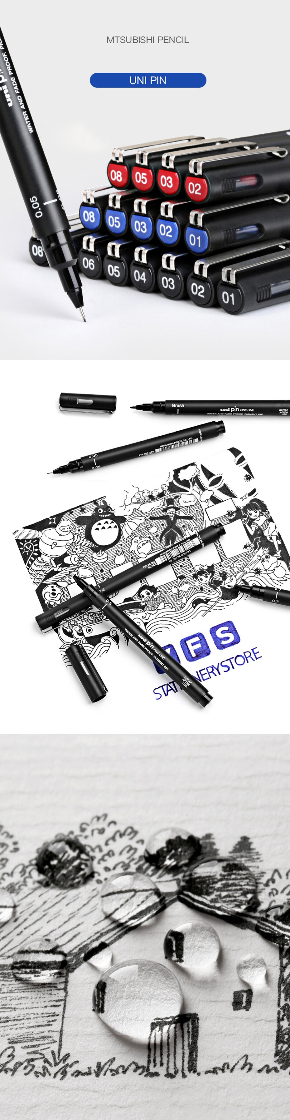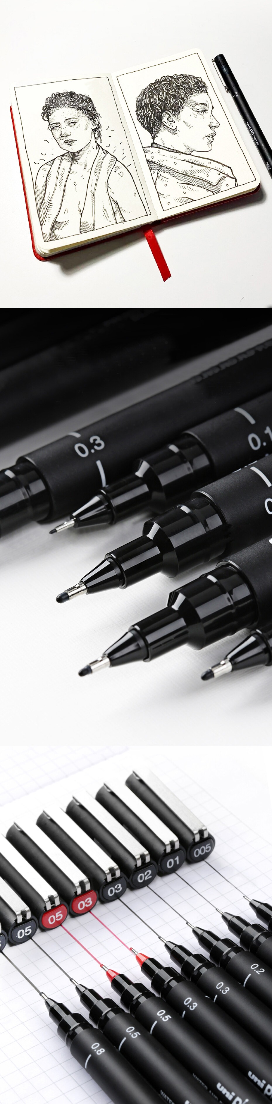 UNI PIN-200 line marker Sketching pen Black sketch pen Extremely fine fiber pen tip Waterproof drawing pen Large Capacity Comic Pen