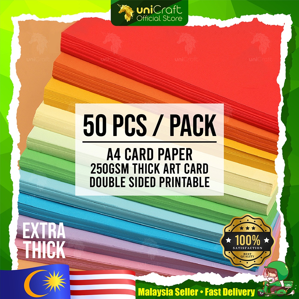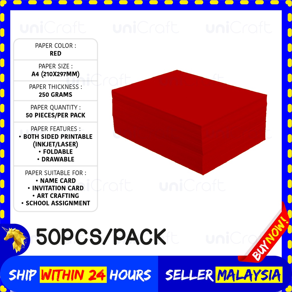 UNICRAFT 250GSM A4/50Pcs Red Color Card Paper Extra Thick Double Side Art Card Name Card Kad Tebal Kertas Warna Merah
