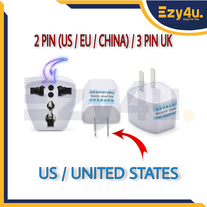 UNIVERSAL MULTI 3 PIN Tourism CONVERSION PLUG ADAPTOR 2 Pin US EU 3PIN UK Travel Adapter