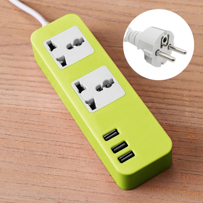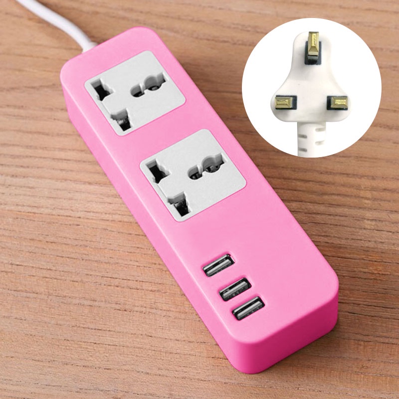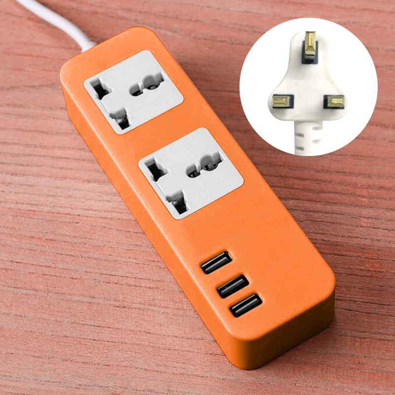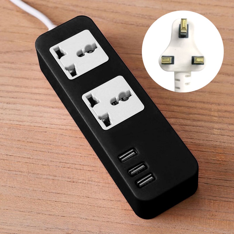 UNIVERSAL PLUG Extension Wire 3 USB Charging Port Dual Socket Power Adapter Travel Home Appliances