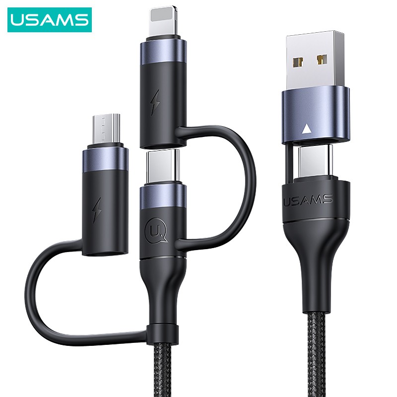 USAMS 1.2M 60W 3 in 1 USB IP Type C Micro Cable Fast Charge Cable Data Cable For 1phone15 Android IP8-14 iPd Laptop Tablet