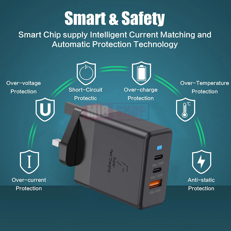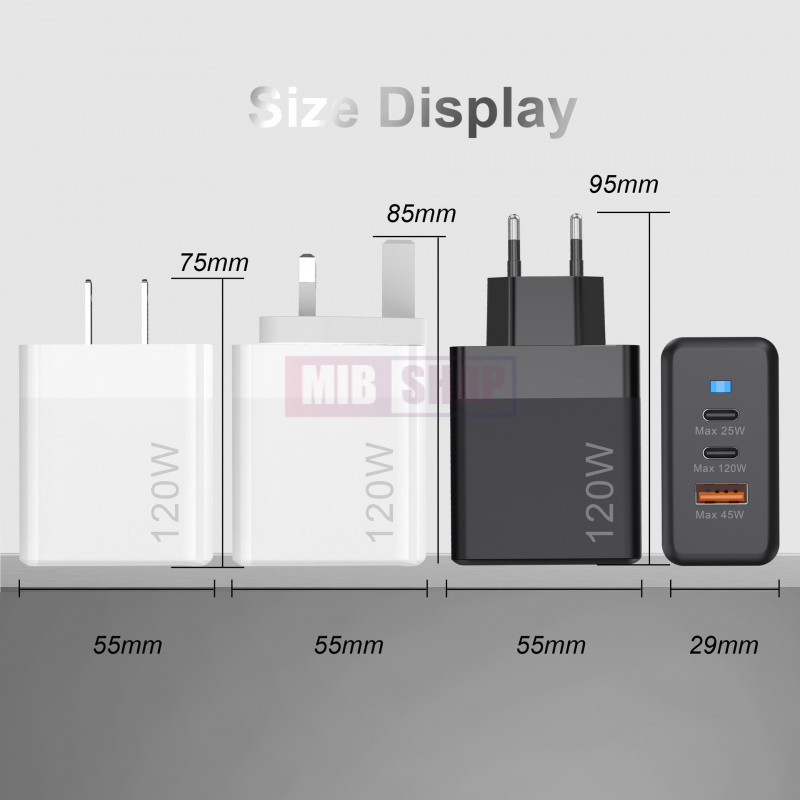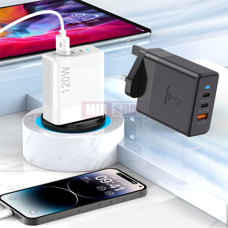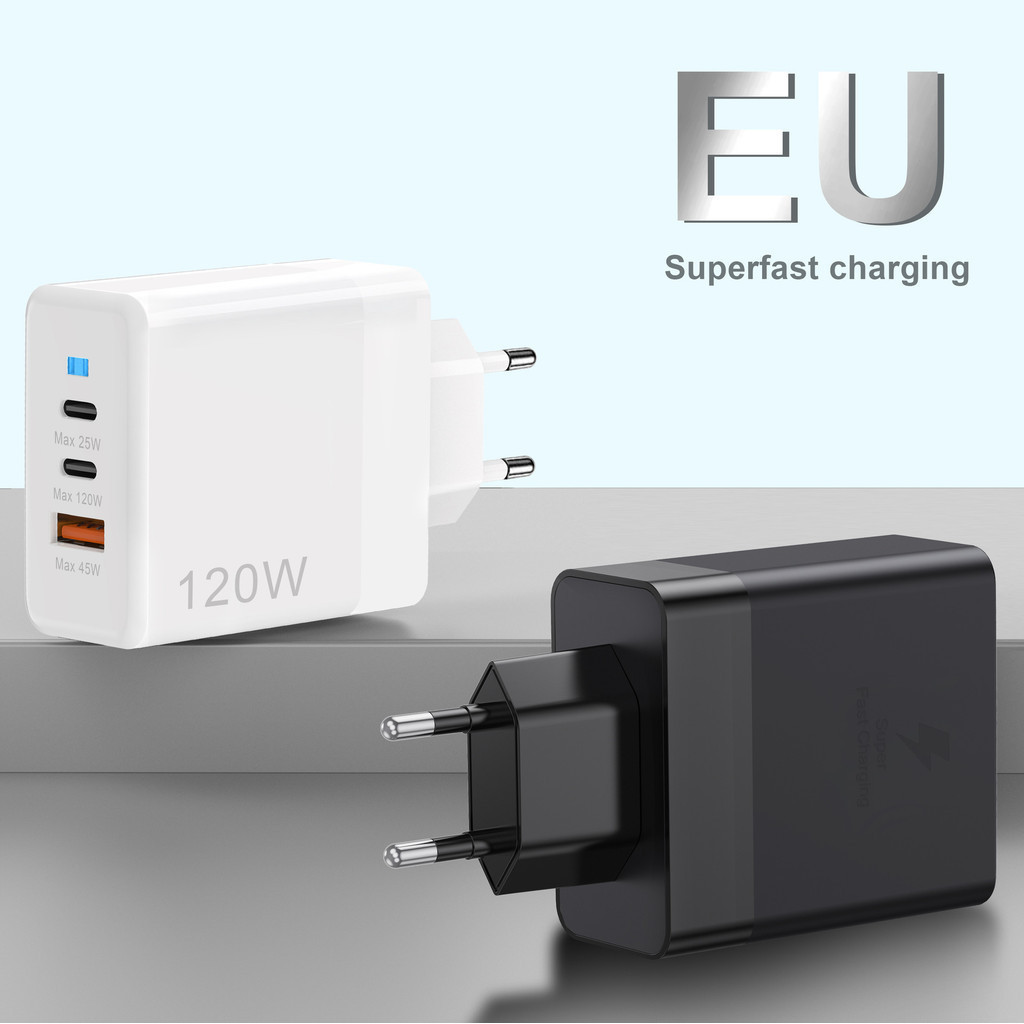 USB+2 Type-C Multi-Port 120W Super Fast Charger Mobile Phone Quick Charge Head With Indicator Travel Adapter