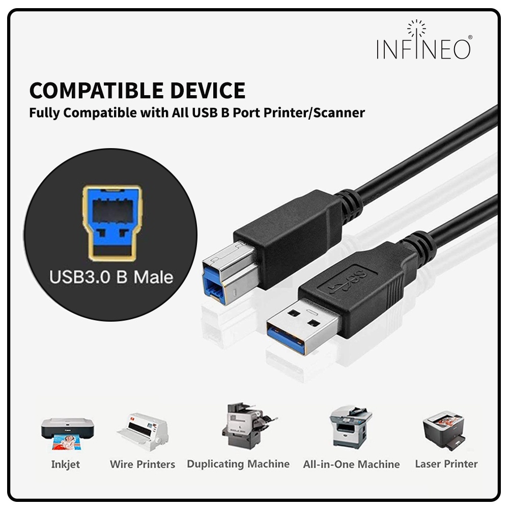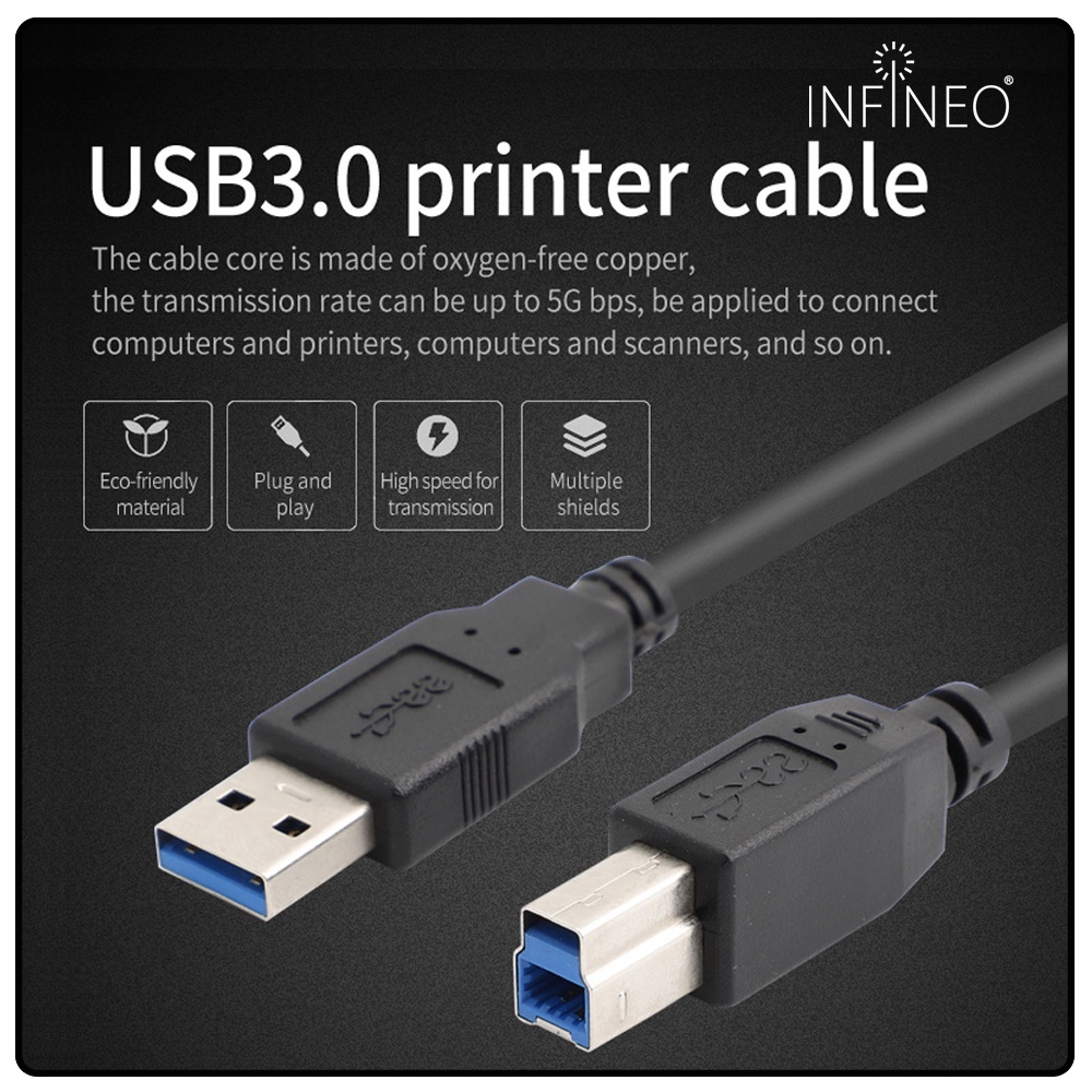 USB 2.0/USB 3.0 High Speed Printer Cable A to B Male (1m/3m/5m)