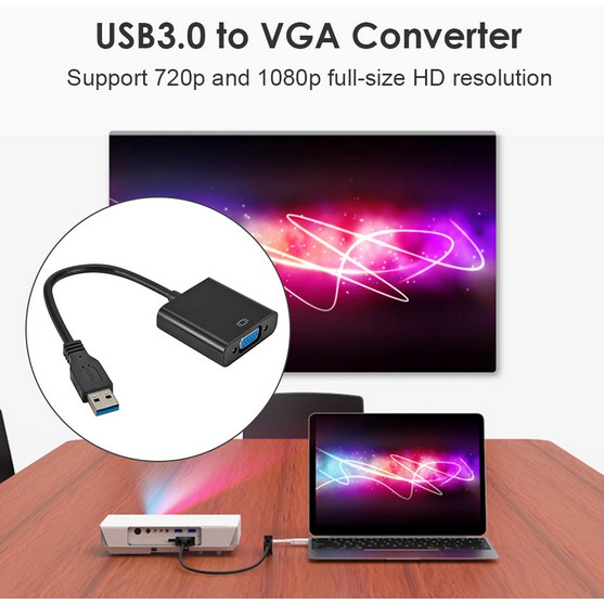 USB 3.0 to VGA Video Display Adapter 1080P Multi-Display Converter (Black)