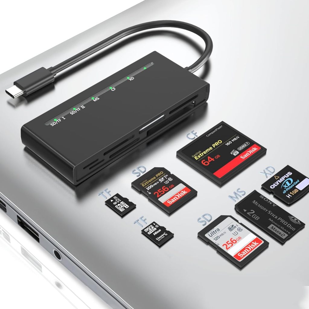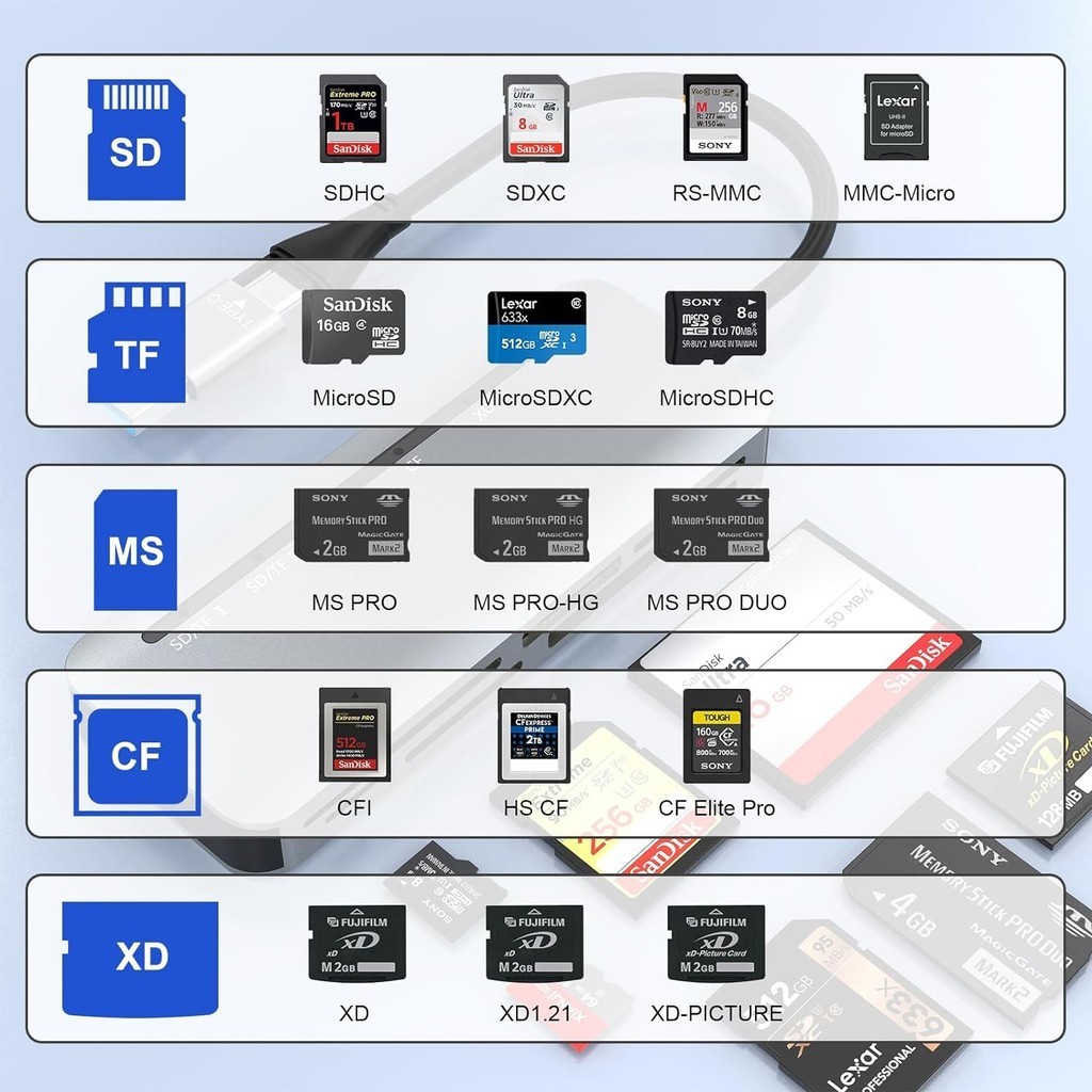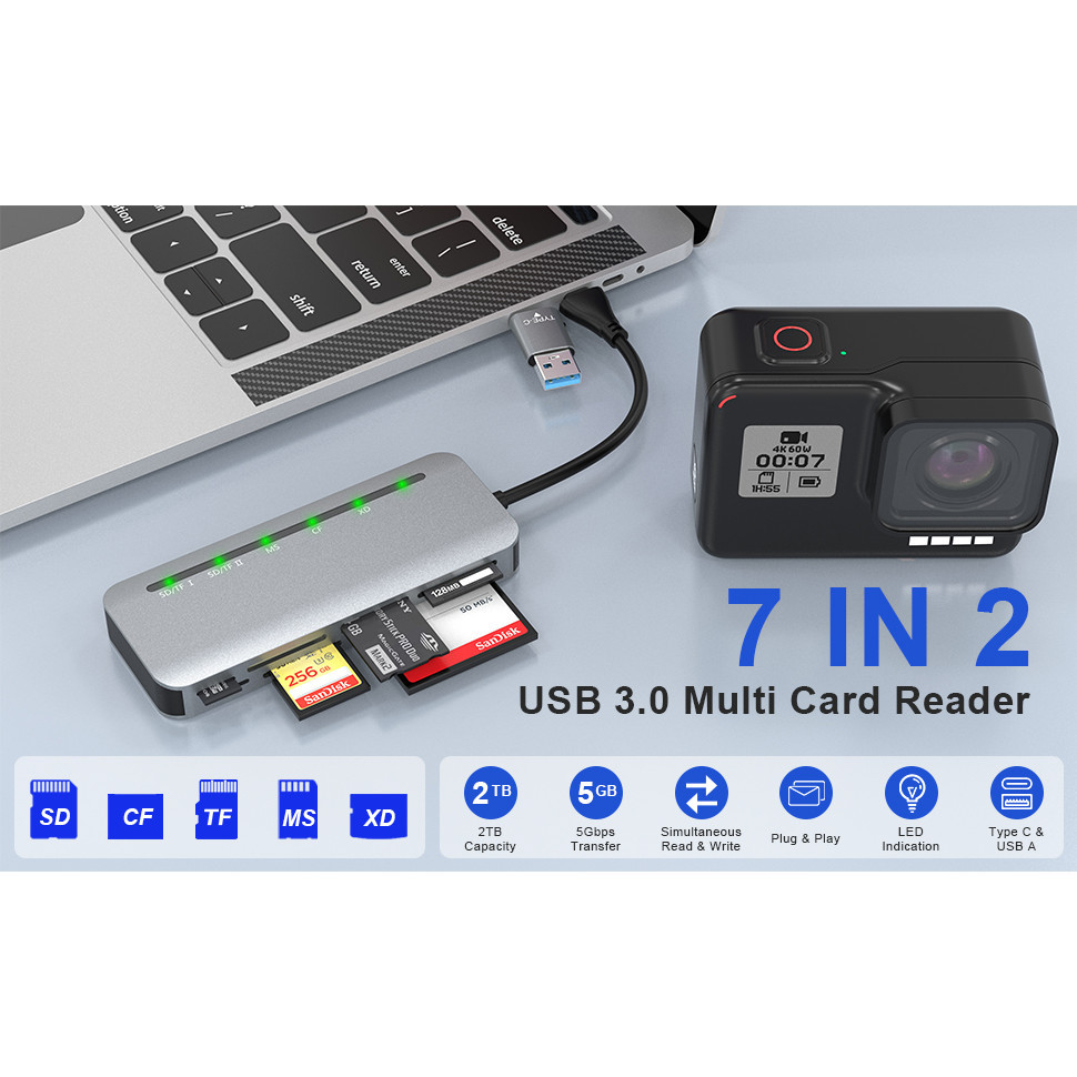 USB C USB 3.0 Multi Card Reader for SDXC SDHC/TF/CF CFI/XD/MS MMC Adapter Dual Port Camera Card Reader Memory Stick Pro Duo Compact Flash Card