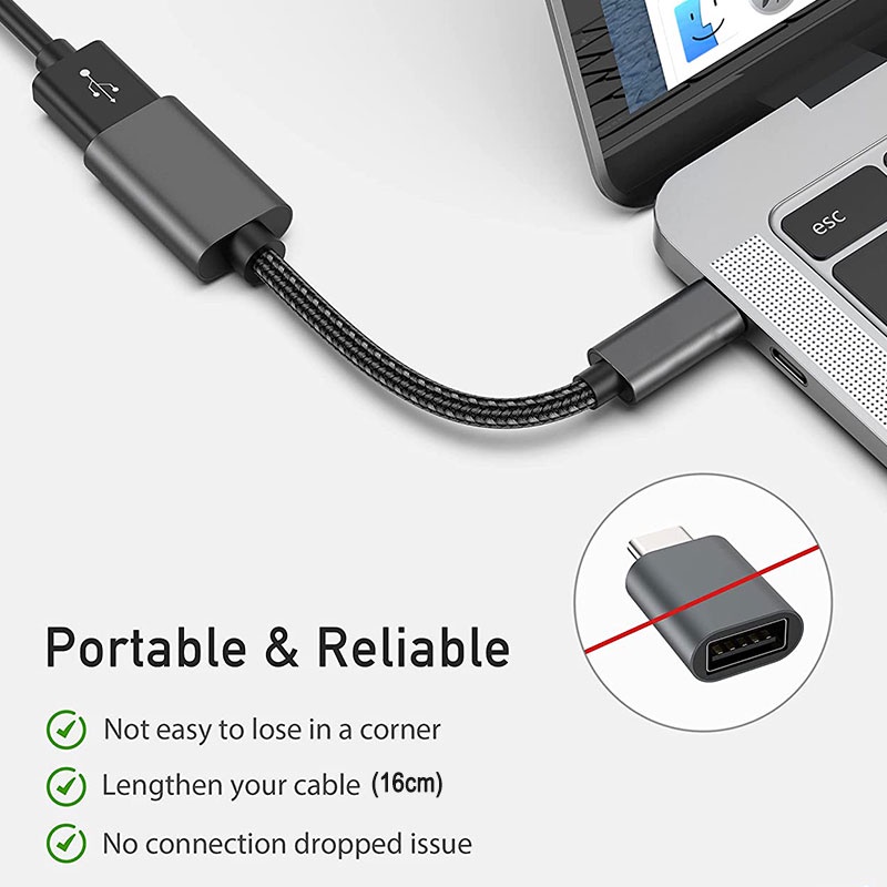 USB Female to USB Type C Adapter, 16cm USB C Male to USB 2.0 Female OTG Cable for the USB and Type C Connector Device