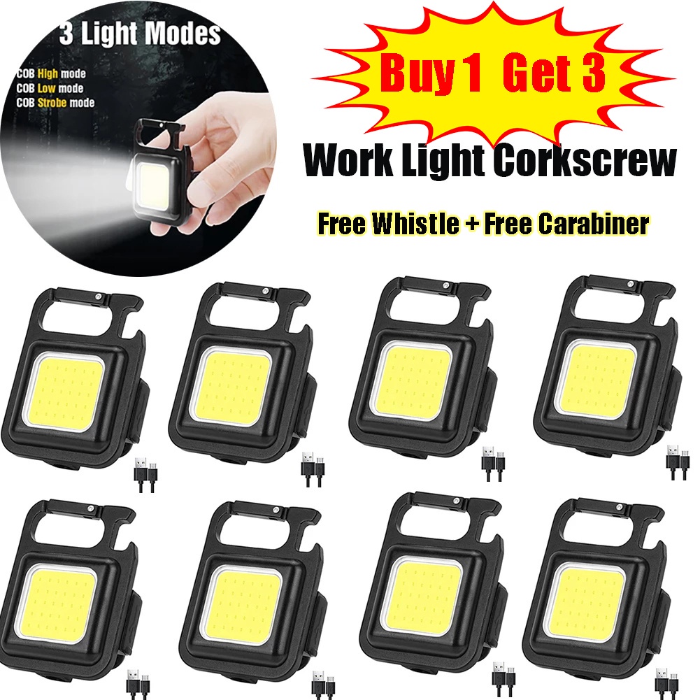 USB Mini Keychain Light COB Flashlight / 3 Types Mode Water Resistant LED Emergency Light for Hiking, Camping, Survival, Emergency