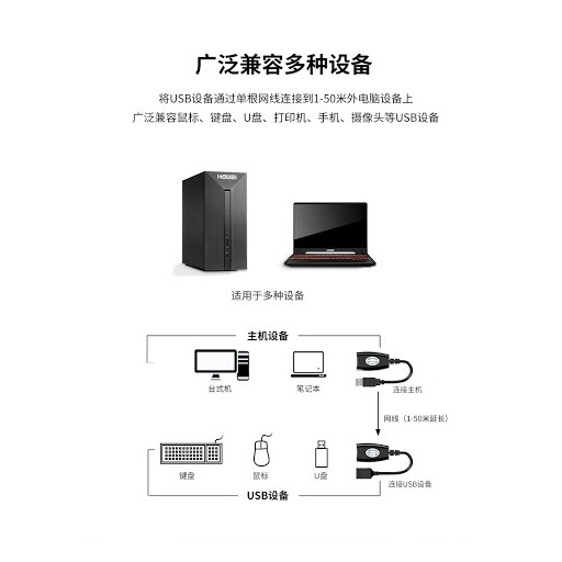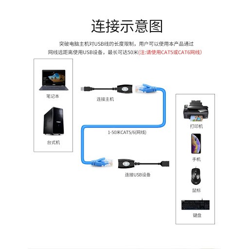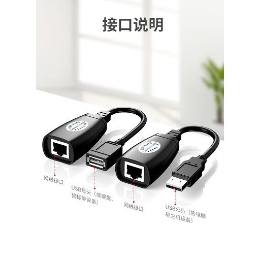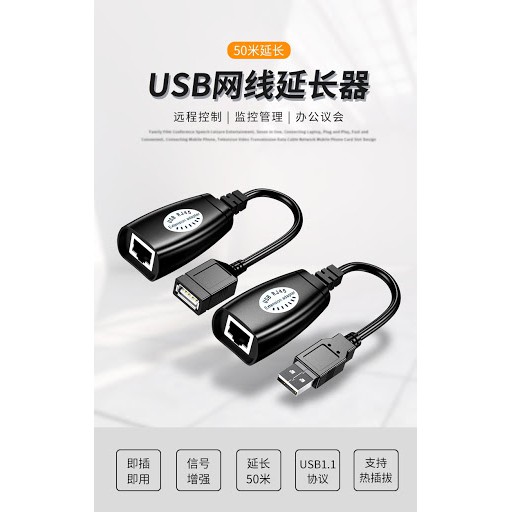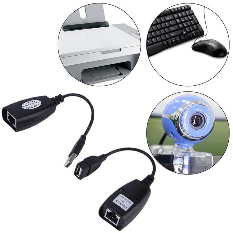 USB RJ45 Extension Adapter/ USB Extension Ethernet RJ45 Cat5/6 Cable LAN Adapter Extender Over Repeater Set (Up to 50m)