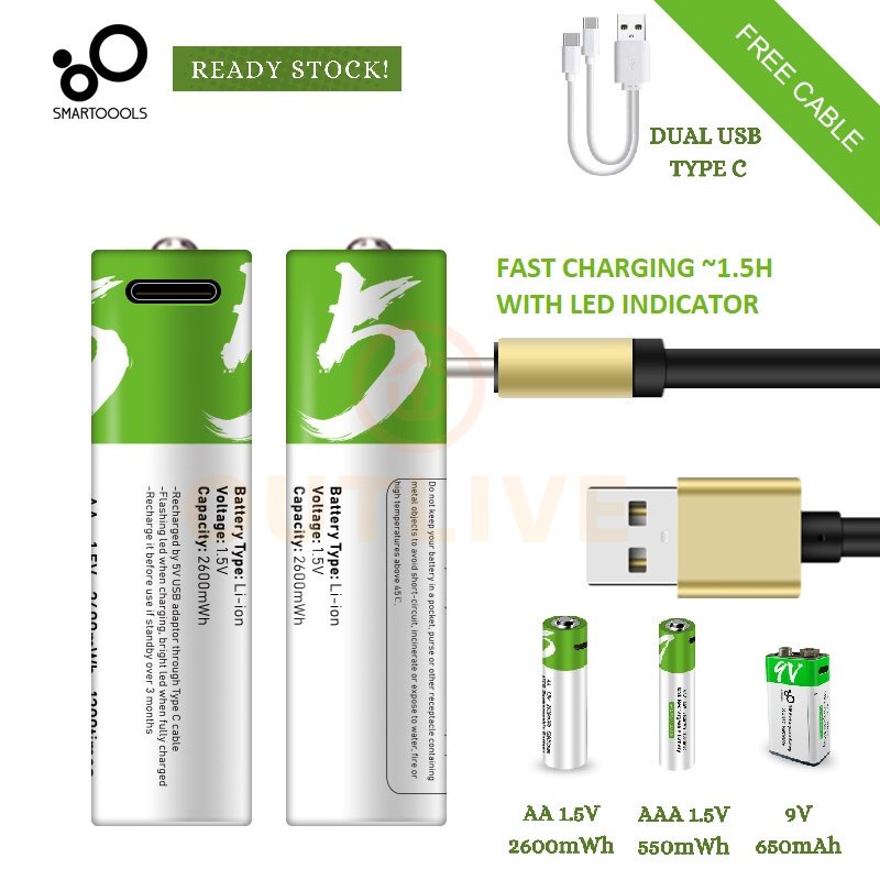 USB Rechargeable Li-ion Battery 1.5V 550m AA AAA Lithium USB battery + USB cable