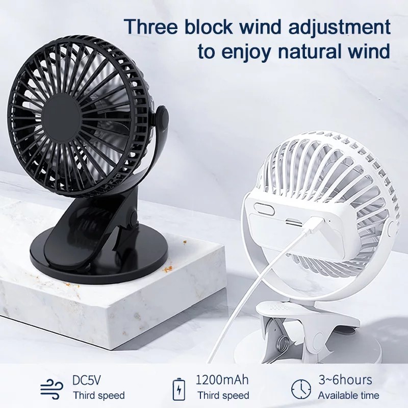 USB Rechargeable Portable Clip Fan Adjustable Angle Strong Powerful Fan Clip on Baby Stroller Table Office Home Desk