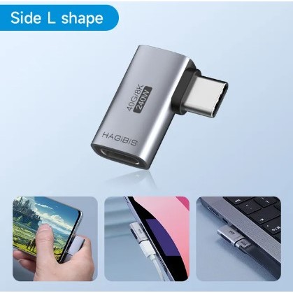 USB Type C 90 Degree L Shape Adapter Male to Female 8K 40Gbps Thunderbolt 4