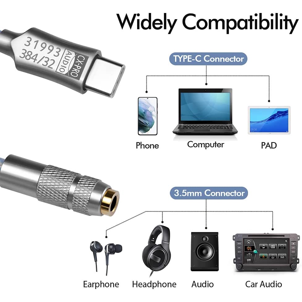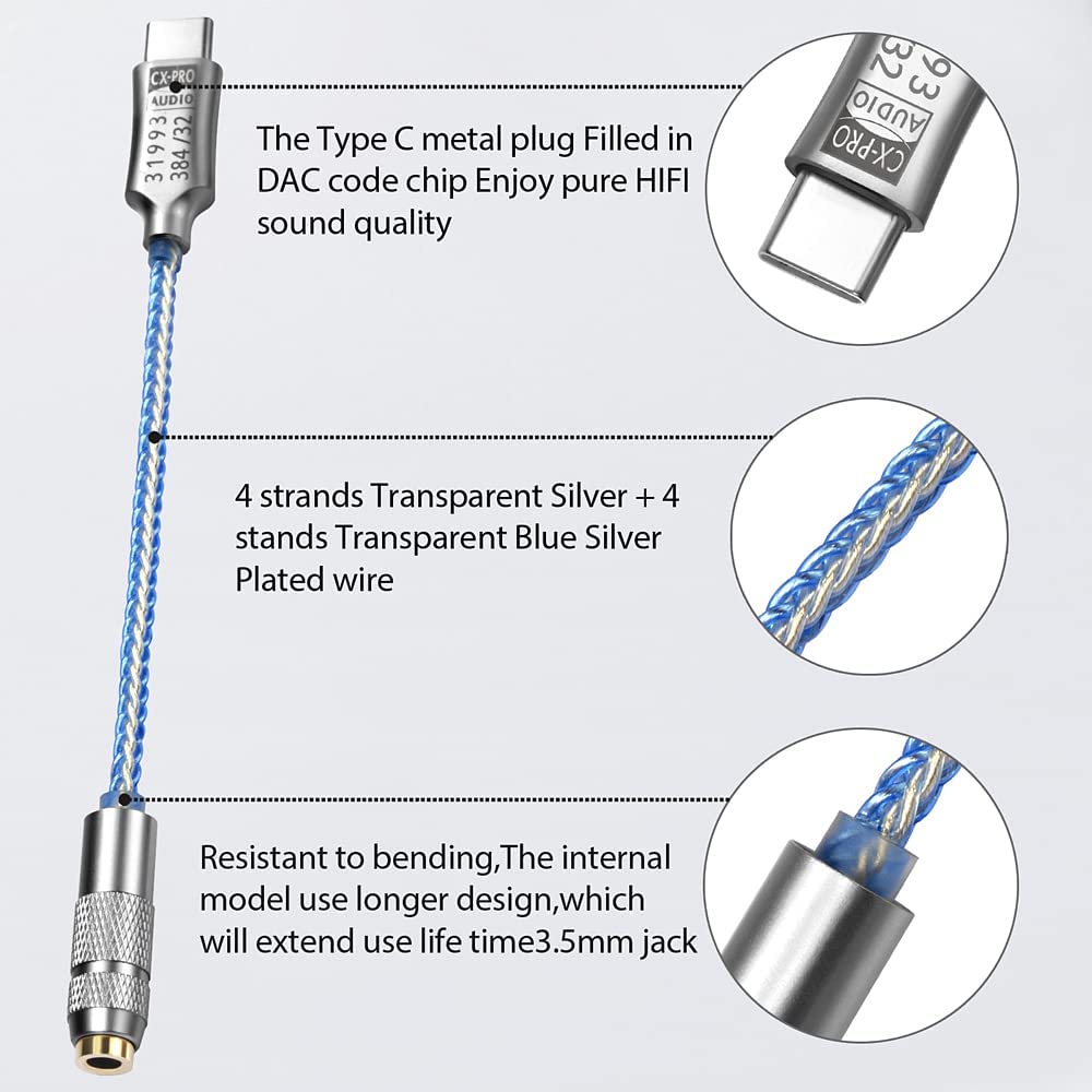 USB Type C to 3.5mm Audio Adapter CX31993 HiFi DAC Headphone Amplifier Audio Interface Earphone Amplifier SNR128dB 32b/384kHz